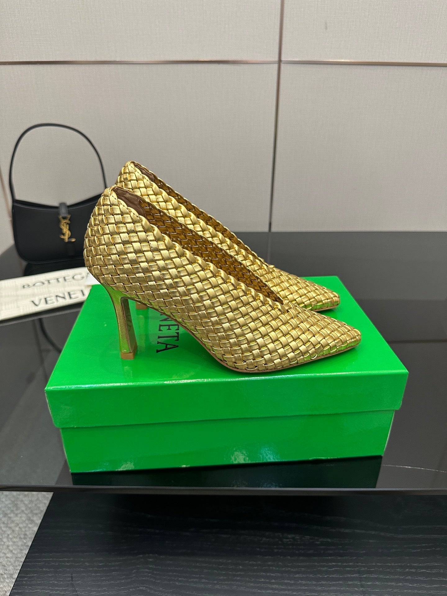 BV Sofia Pump 90mm Gold Intreccio leather 427649