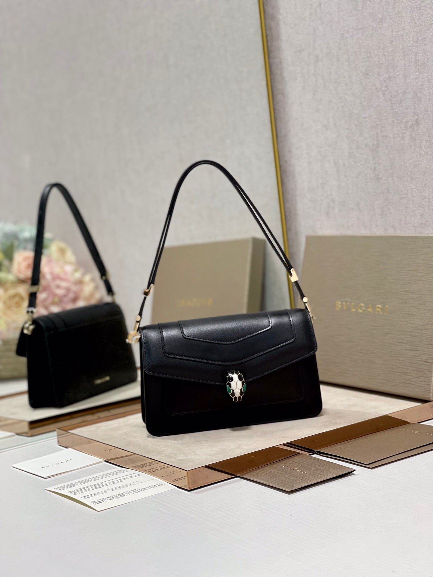 Serpenti Forever East-West Shoulder Bag 22cm Black Cafskin GHW 188478