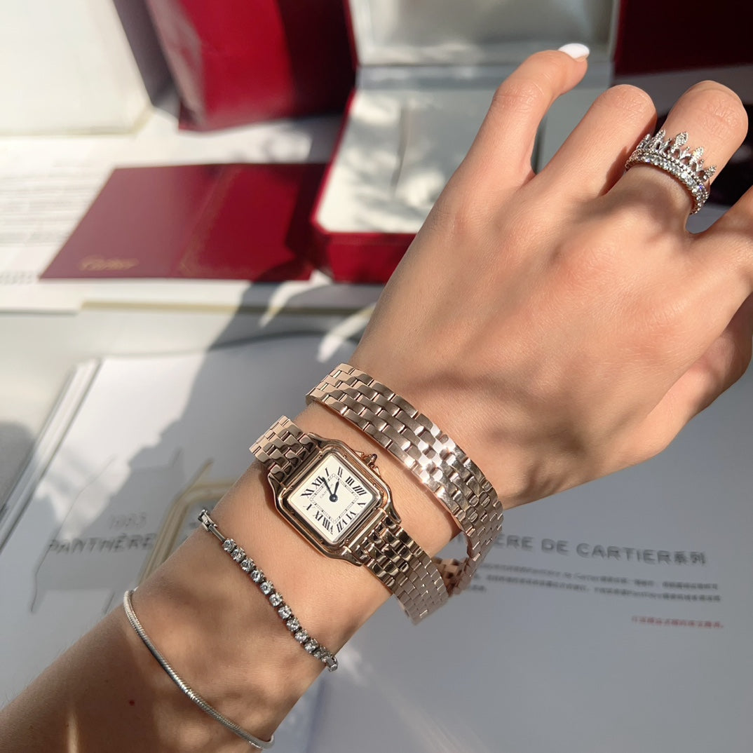 PANTHERE DE CARTIE 22MM QUARTZ ROSE GOLD STEEL WHITE DIAL