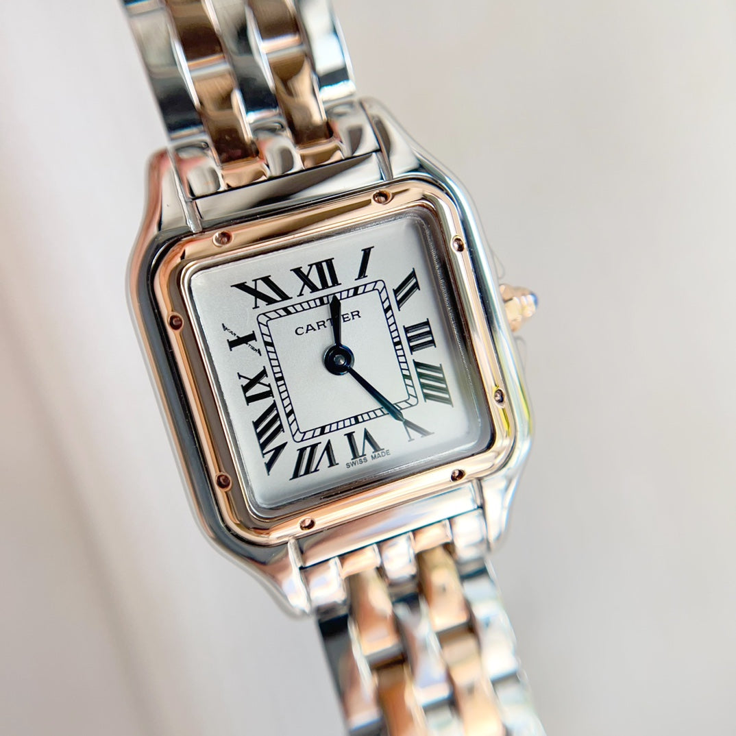 PANTHERE 27MM PINK GOLD SILVER CASE DIAMOND BEZEL WHITE DIAL (BEST VERSION)