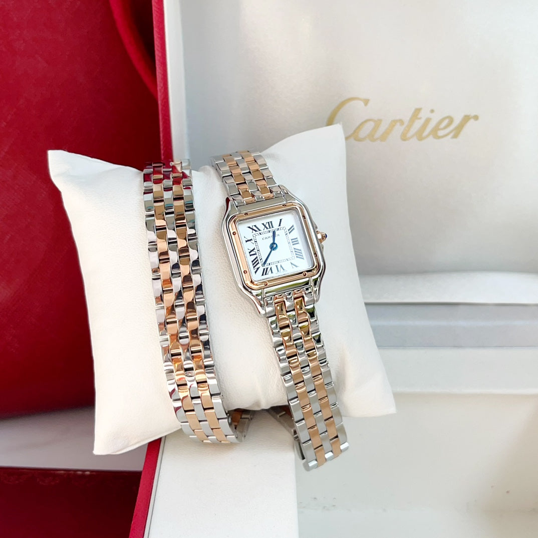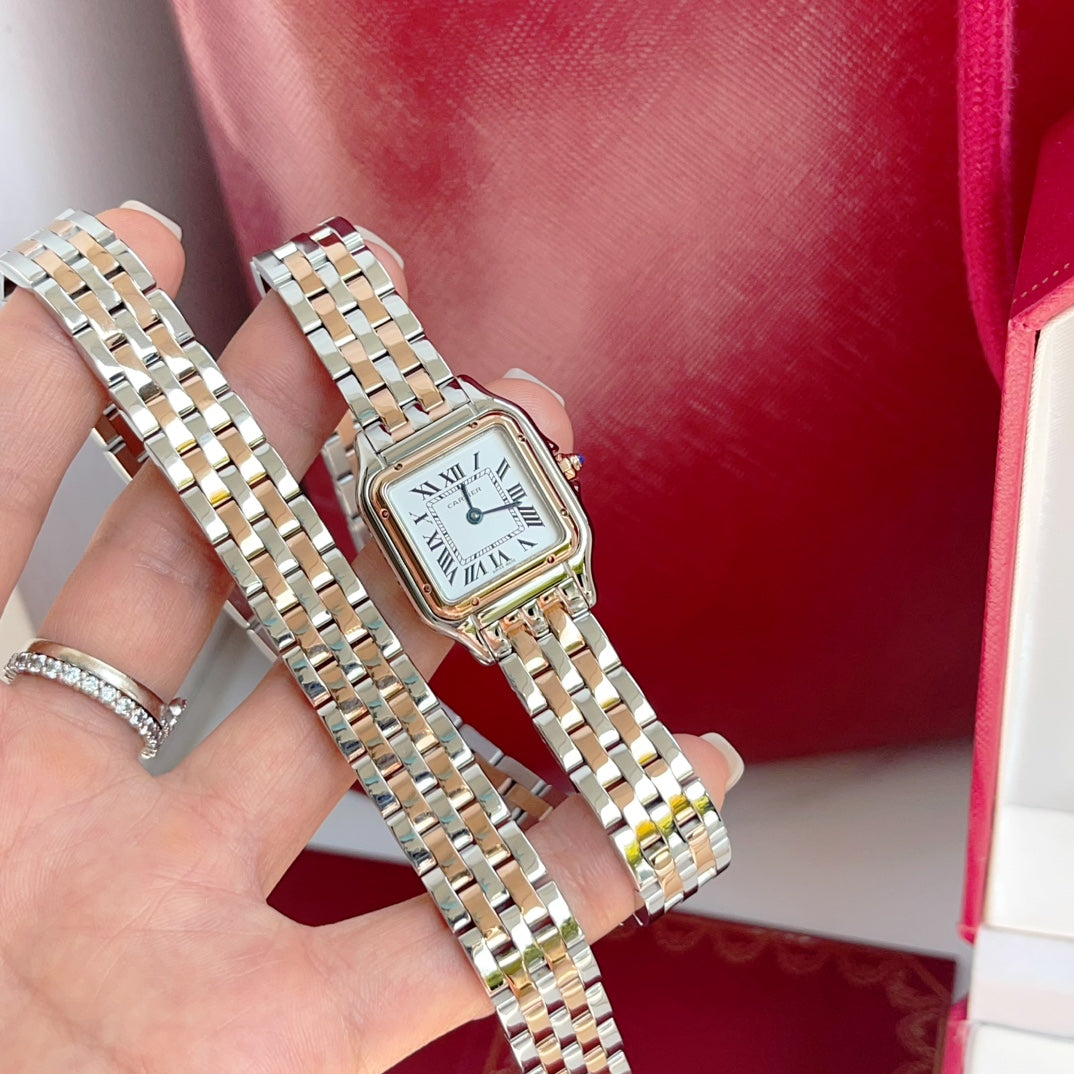 PANTHERE DE CARTIE 22MM QUARTZ GOLD STEEL WHITE DIAL BEST VERSION