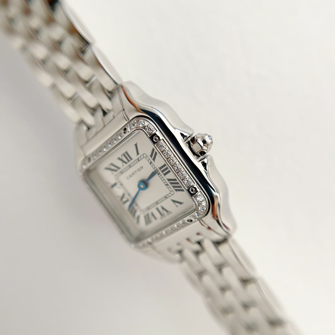 PANTHERE 27MM SILVER CASE DIAMOND BEZEL WHITE DIAL