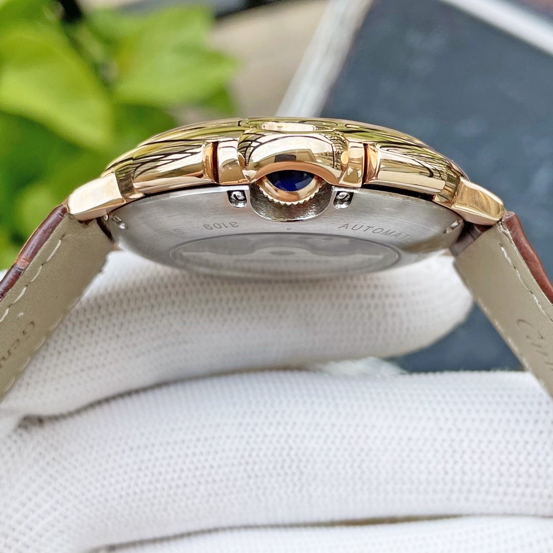 BALLON BLANC DE CARTIER ROSE GOLD CASE GREY LEATHER
