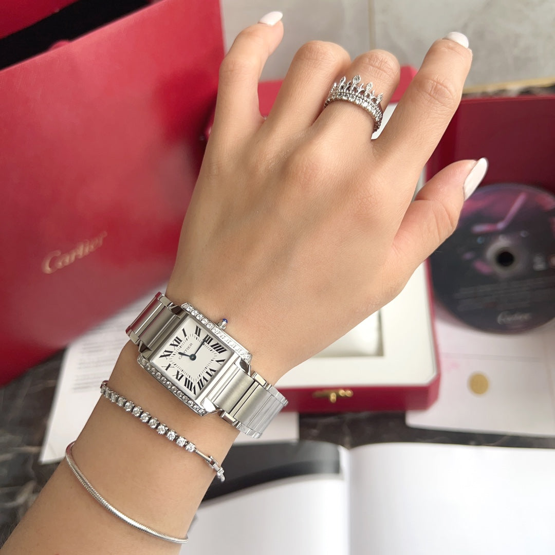 TANK FRANCAISE 25 STEEL DIAMOND BEZEL WHITE DIAL