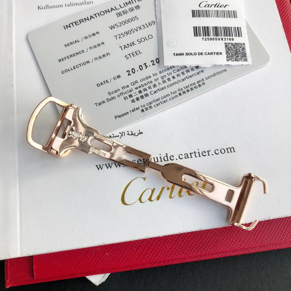 TANK SOLO QUARTZ PINK GOLD CASE BROWN LEATHER