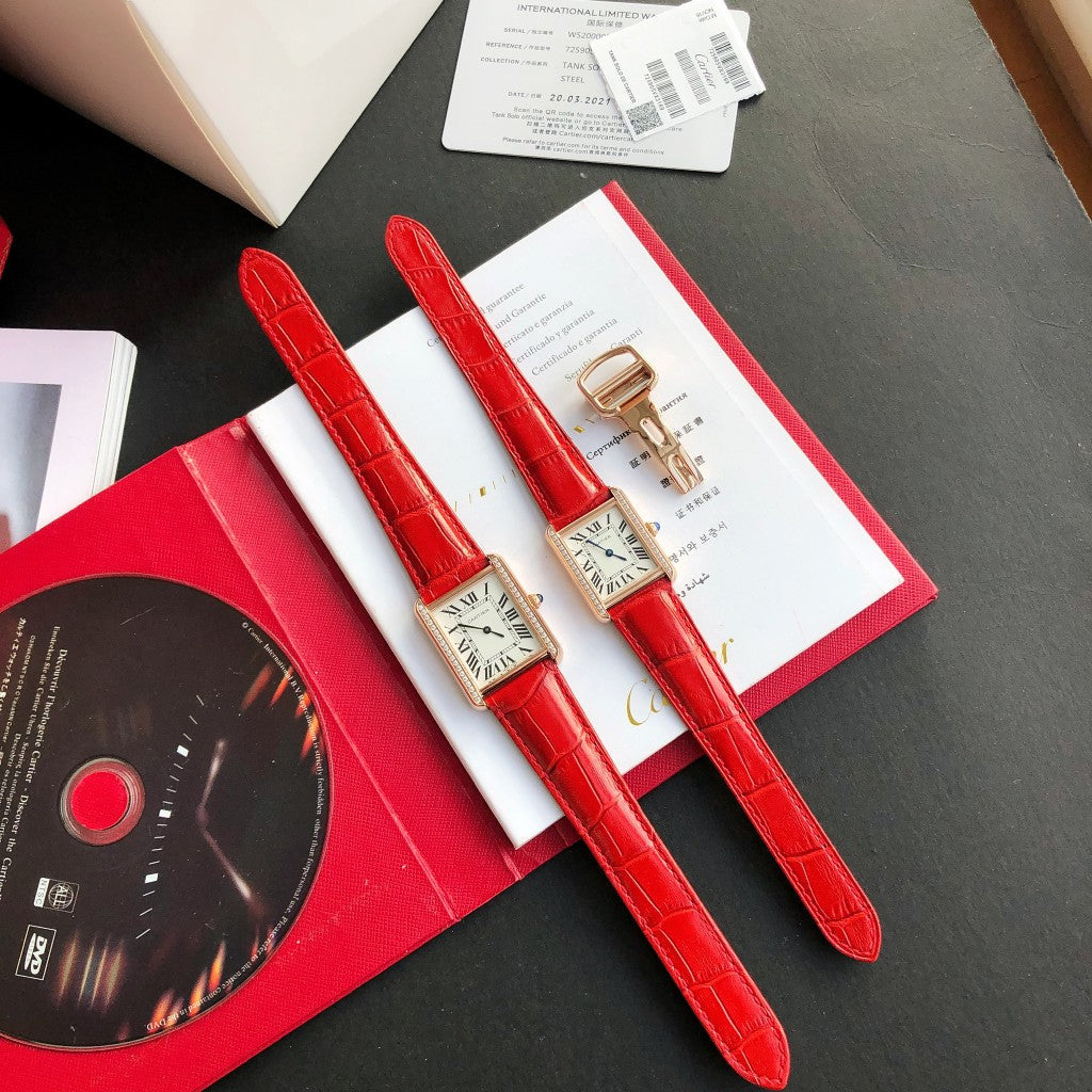 TANK SOLO GOLD DIAMOND BEZEL RED CROCODILE LEATHER