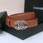 CHANEL BELT 3CM BROWN EMBROIDERED LAMBSKIN WITH SILVER HARDWARE