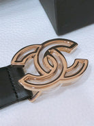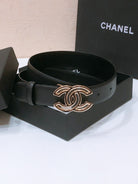 CHANEL BELT 3CM IN BLACK LAMBSKIN WITH GOLD HARDWARE