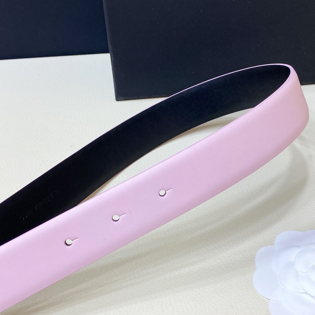 DOUBLE C BELT 30MM IN BABY PINK CALFSKIN WITH SHINY SILVER BUCKLE