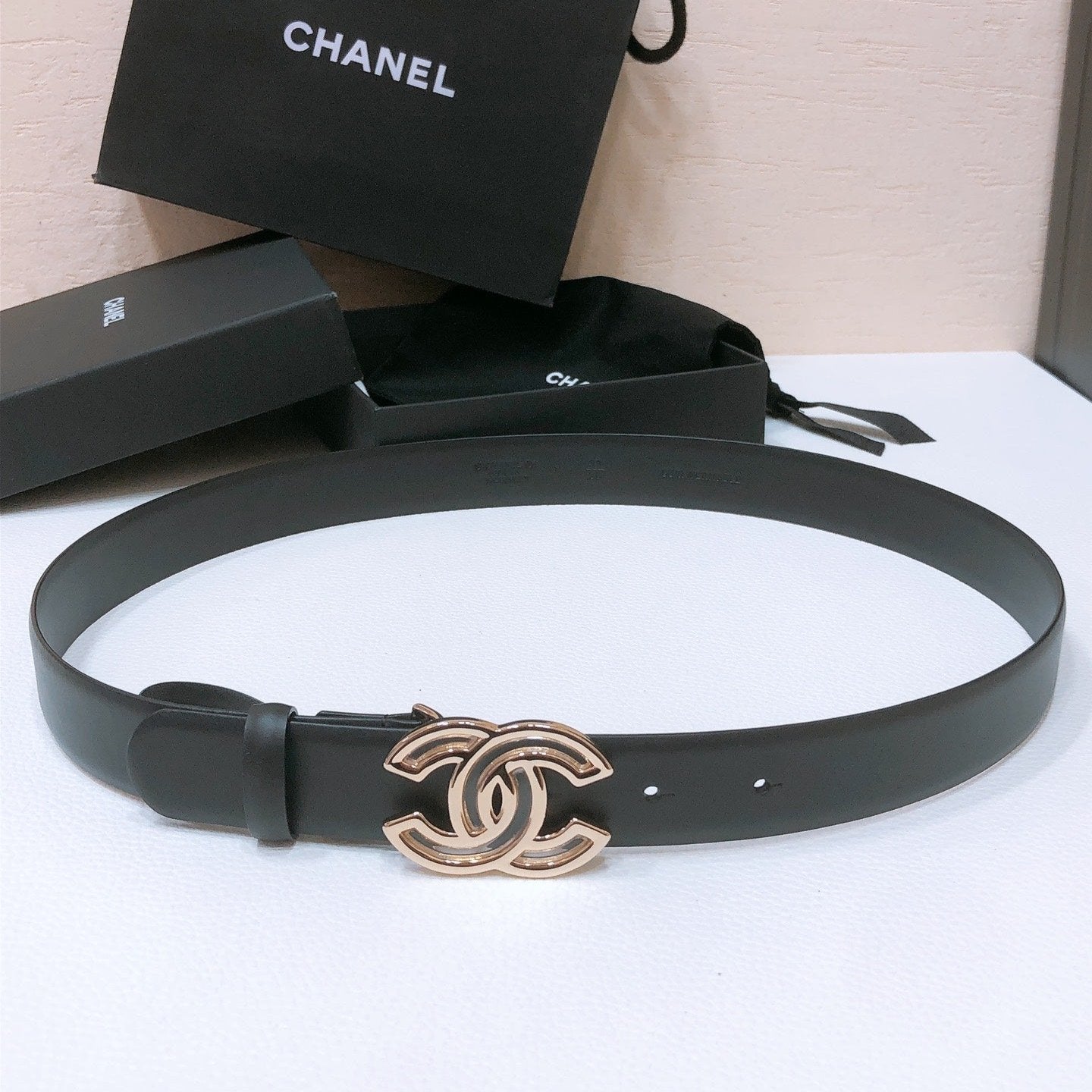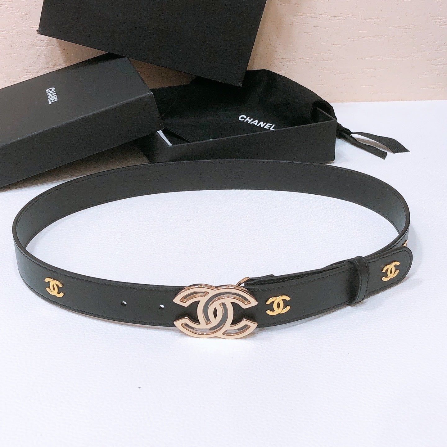 CHANEL BELT 3CM IN BLACK LAMBSKIN WITH GOLD HARDWARE LOGO