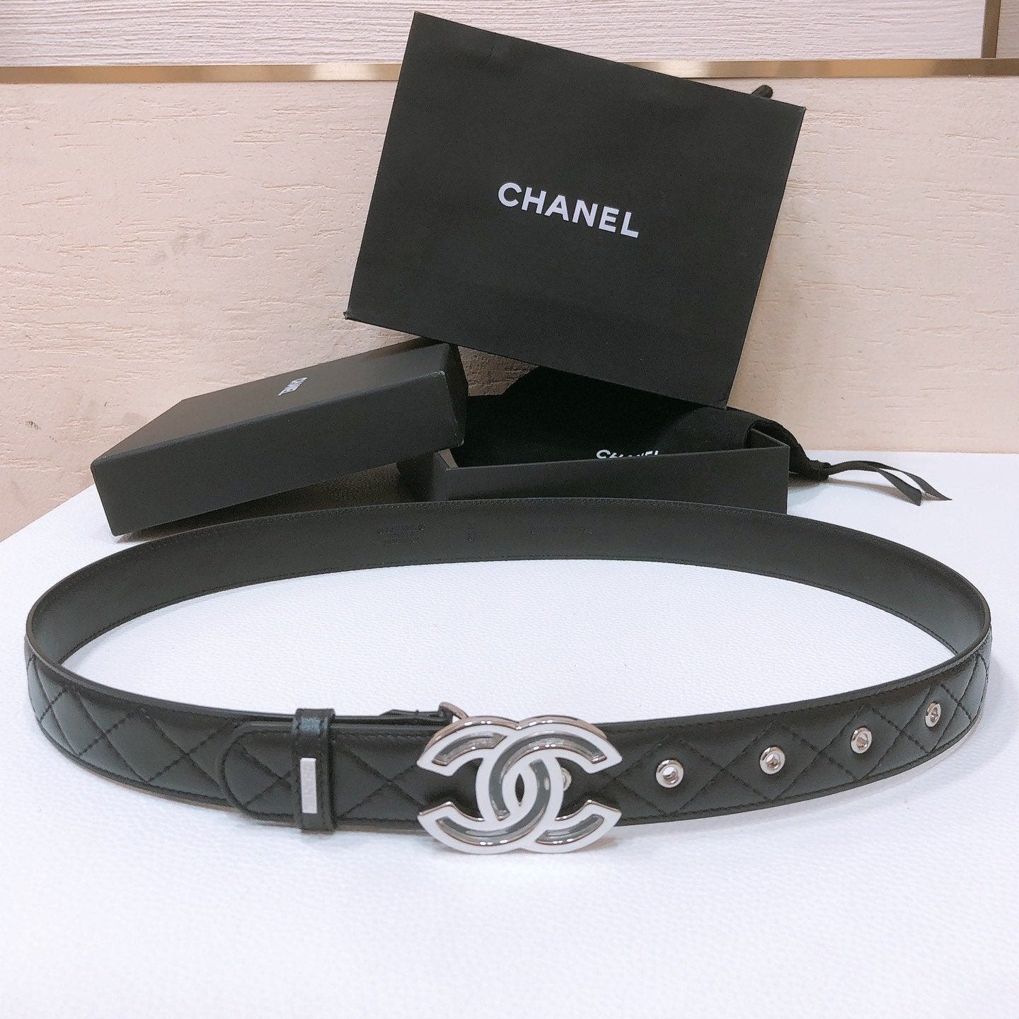 CHANEL BELT 3CM IN BLACK LAMBSKIN SILVER HARDWARE
