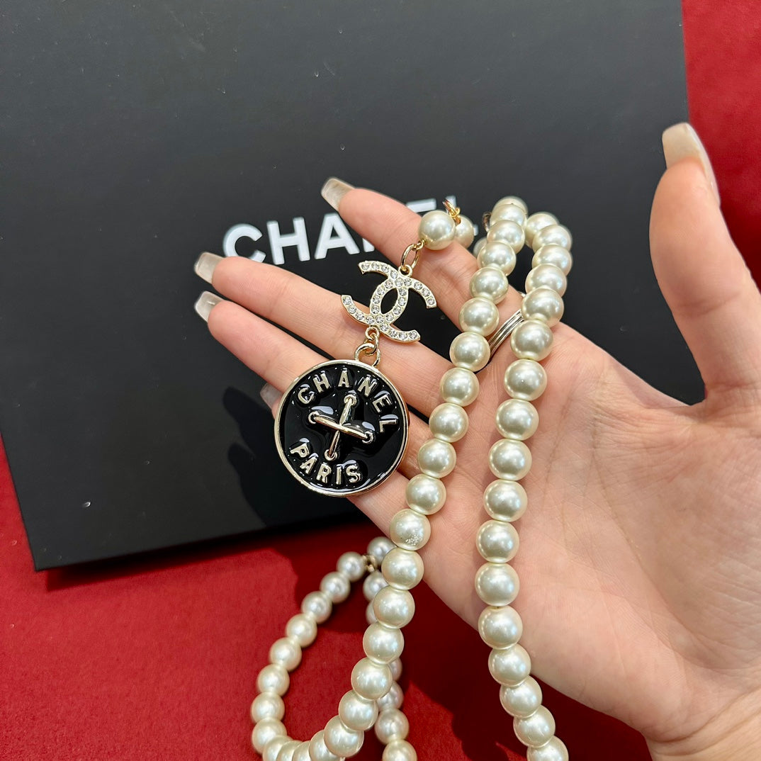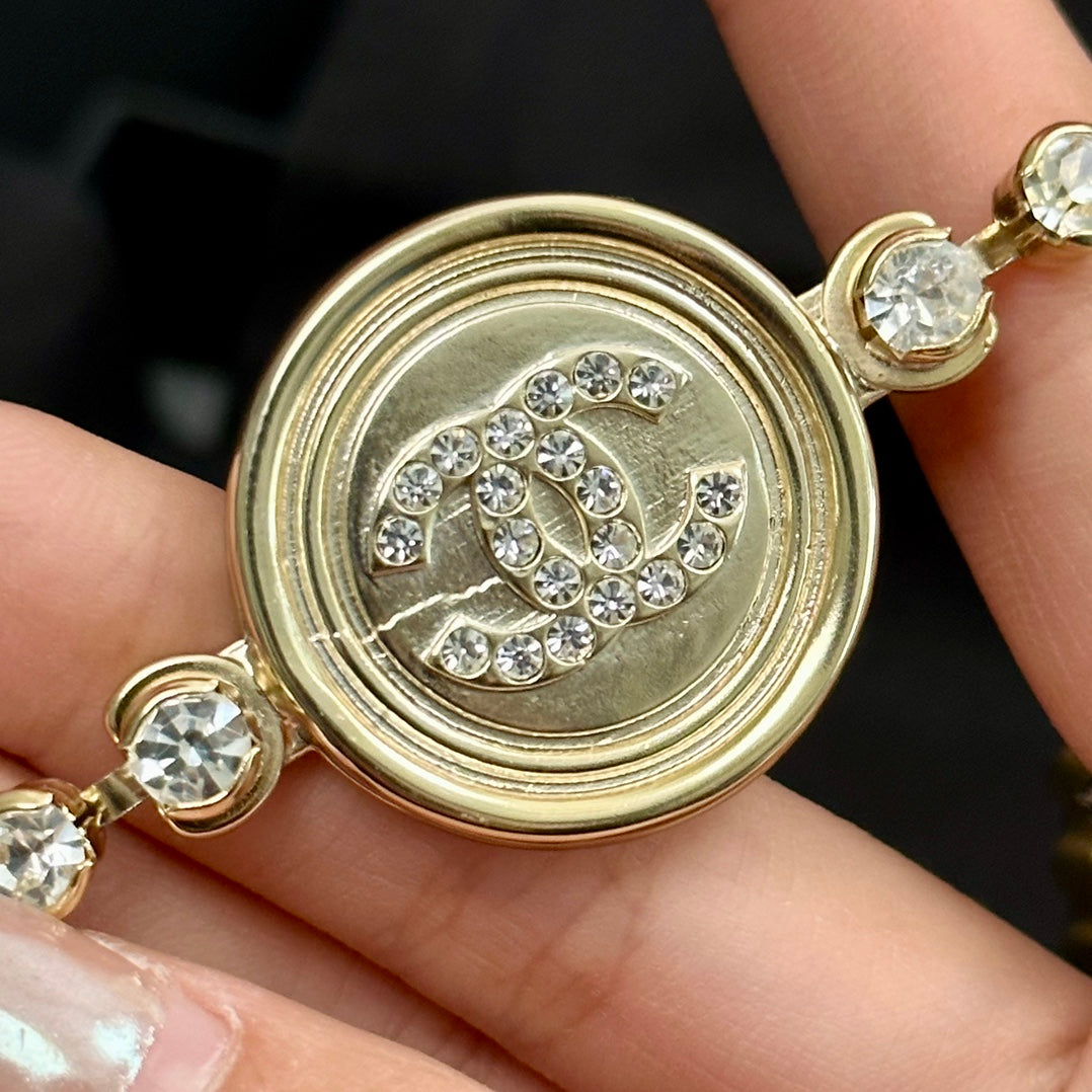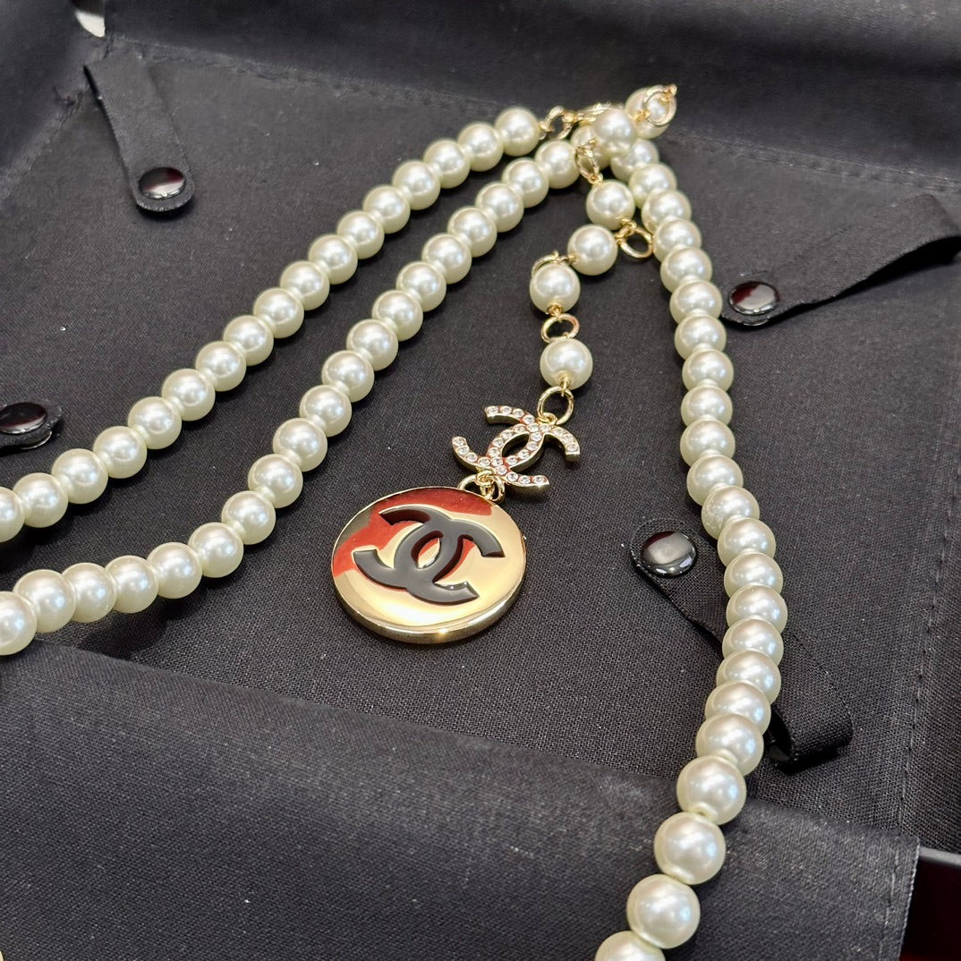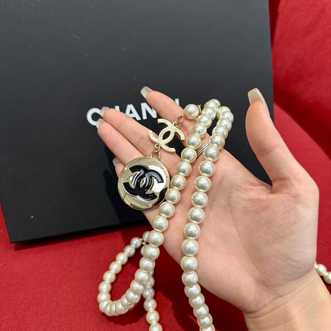 CC BELT 3.0CM LEATHER BLACK BUCKLE GOLD PEARL DIAMOND