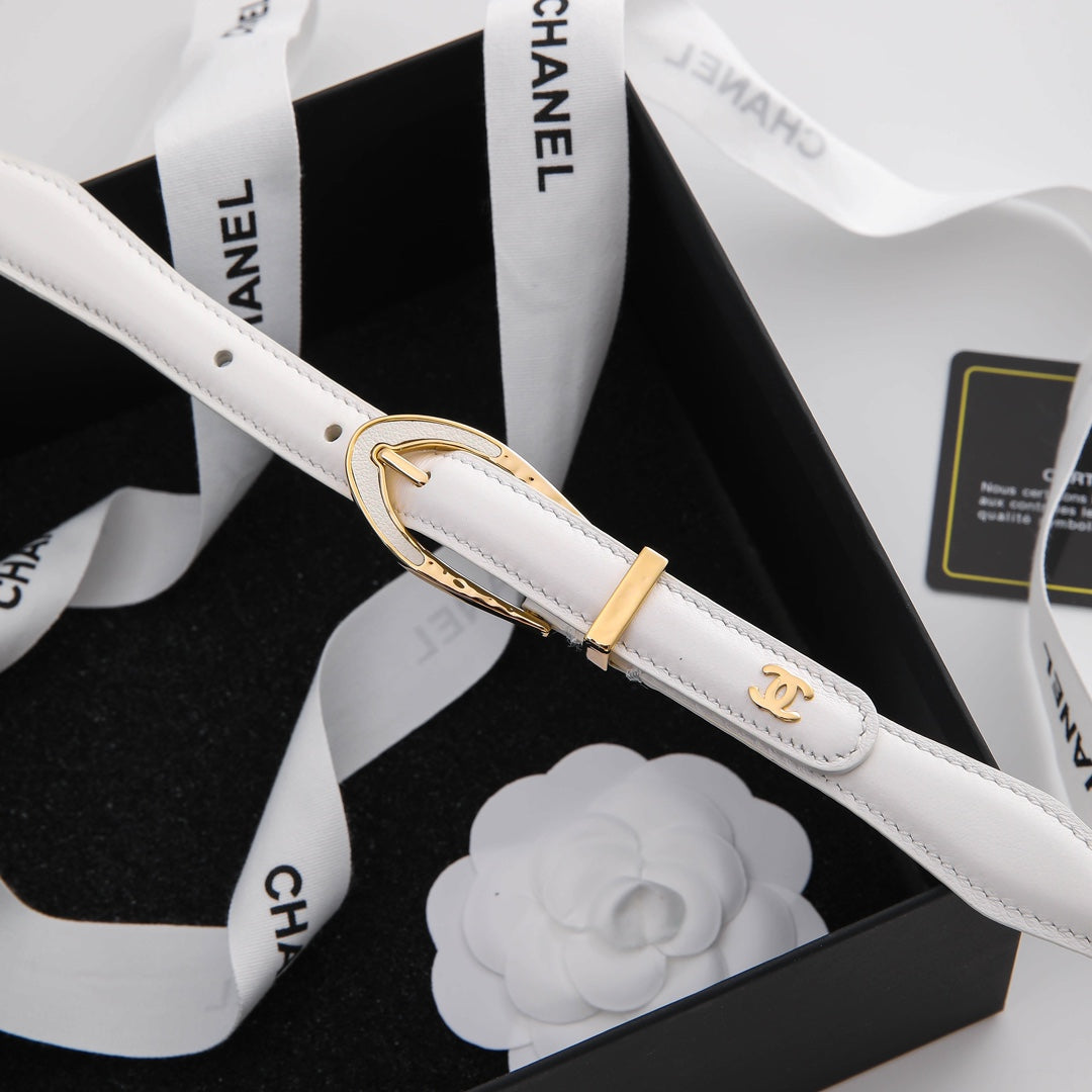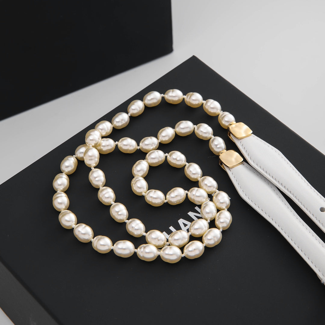 CC BELT 3.0CM LEATHER WHITE BUCKLE GOLD PEARL DIAMOND