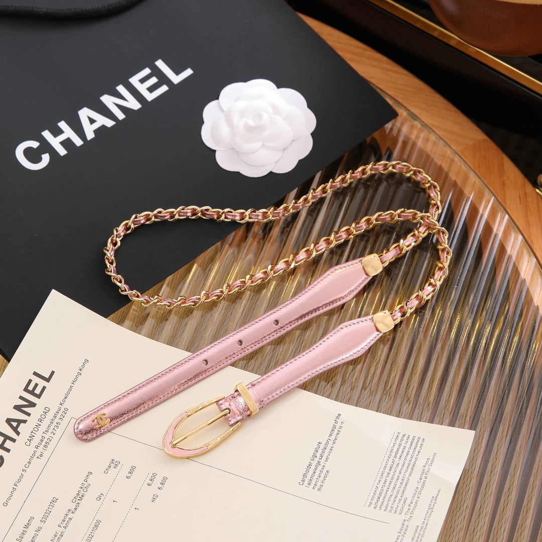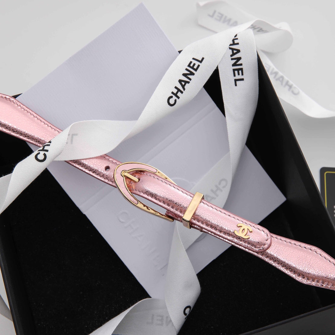 CC BELT 30MM BUCKLE GOLD DIAMOND LEATHER PINK