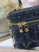 CARO 16 MINI VANITY CASE IN BLACK MACROCANNAGE TWEED
