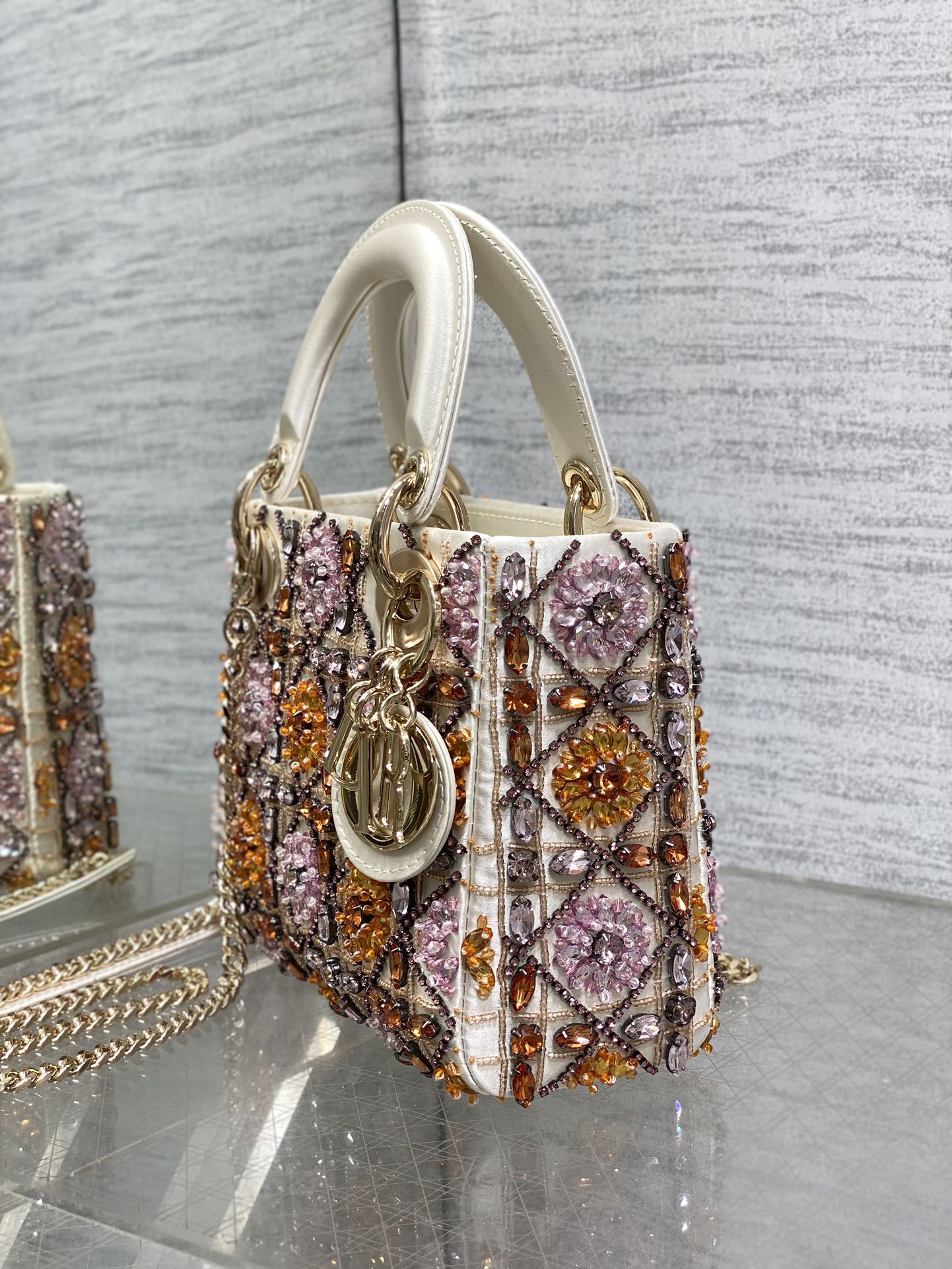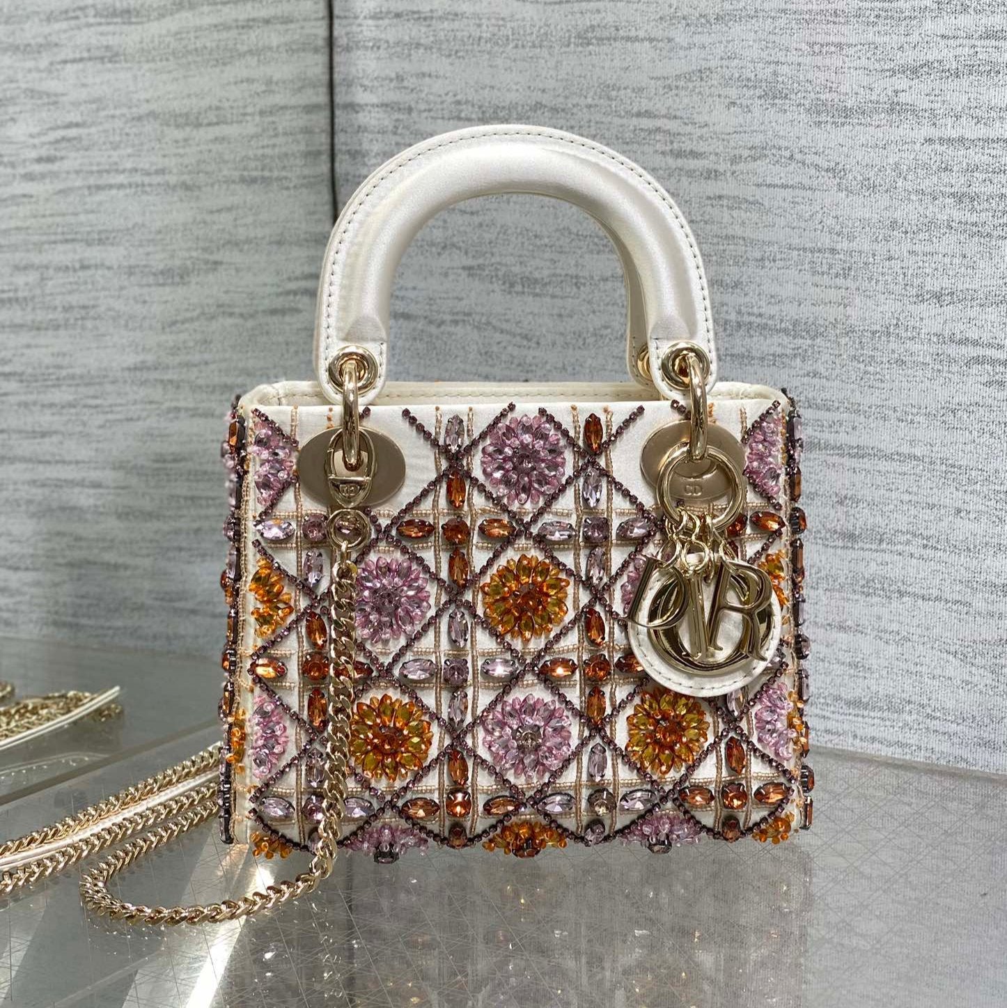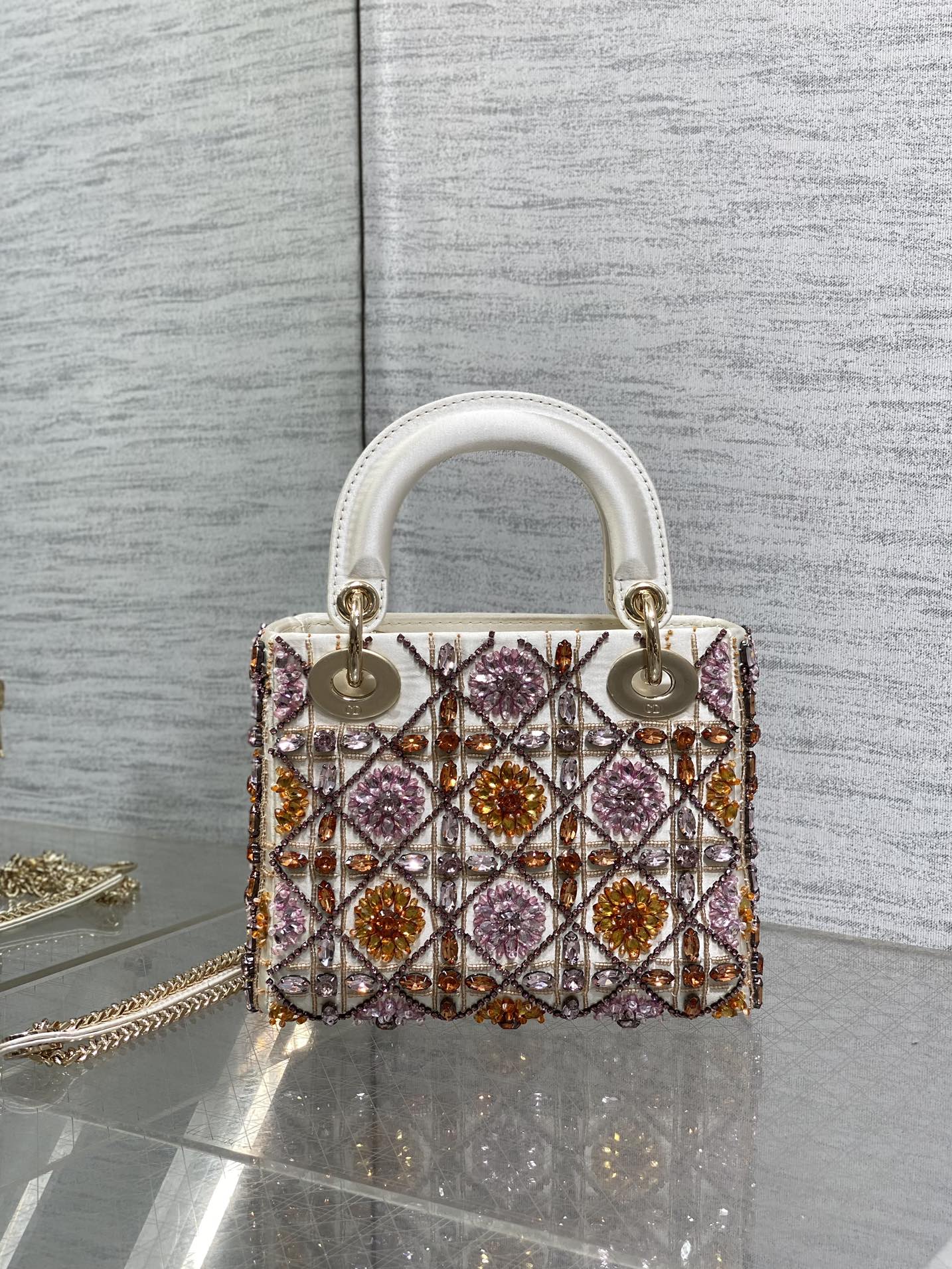 CD Lady 17cm White Canvas Crystal Embellished