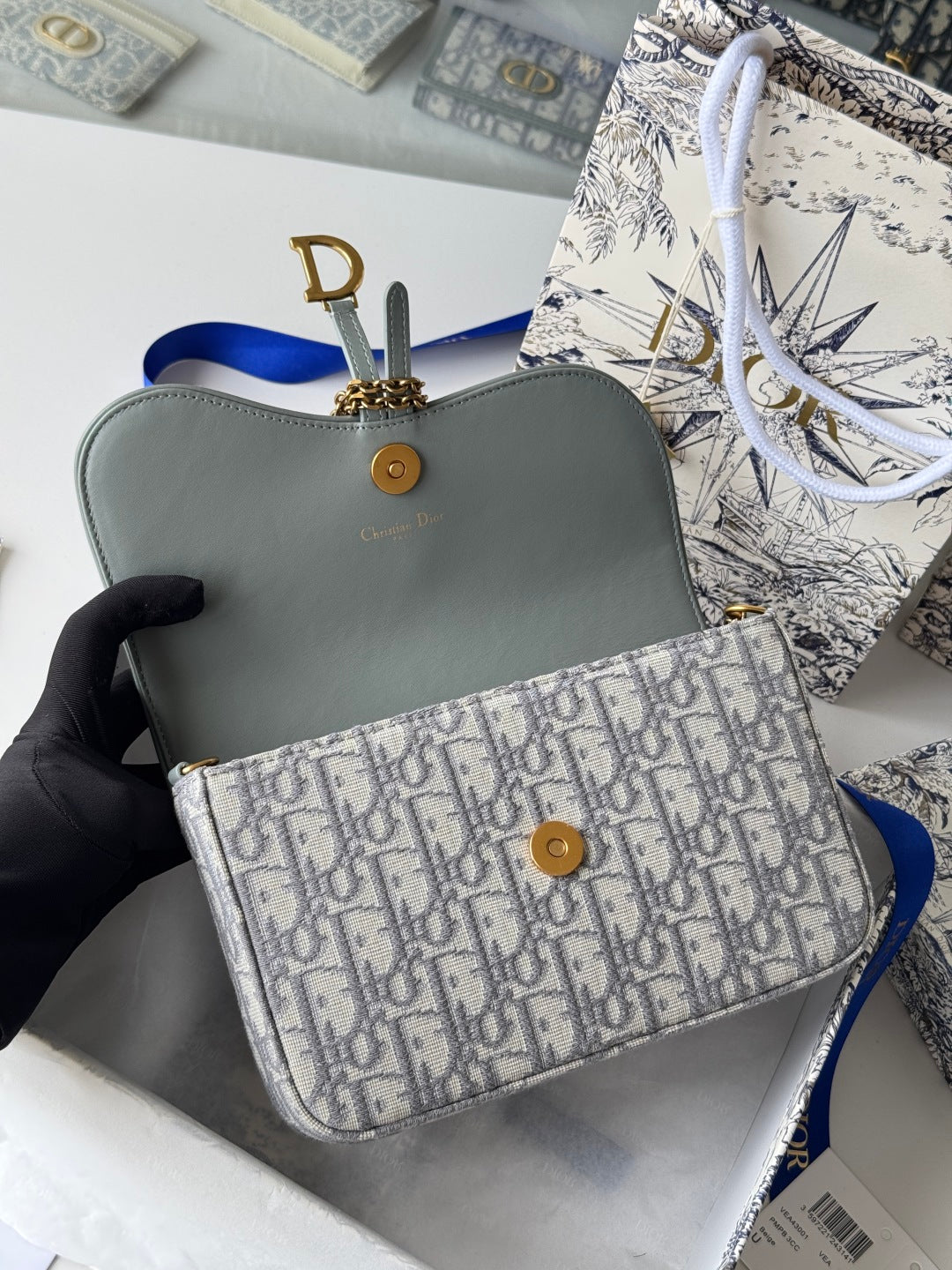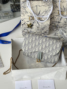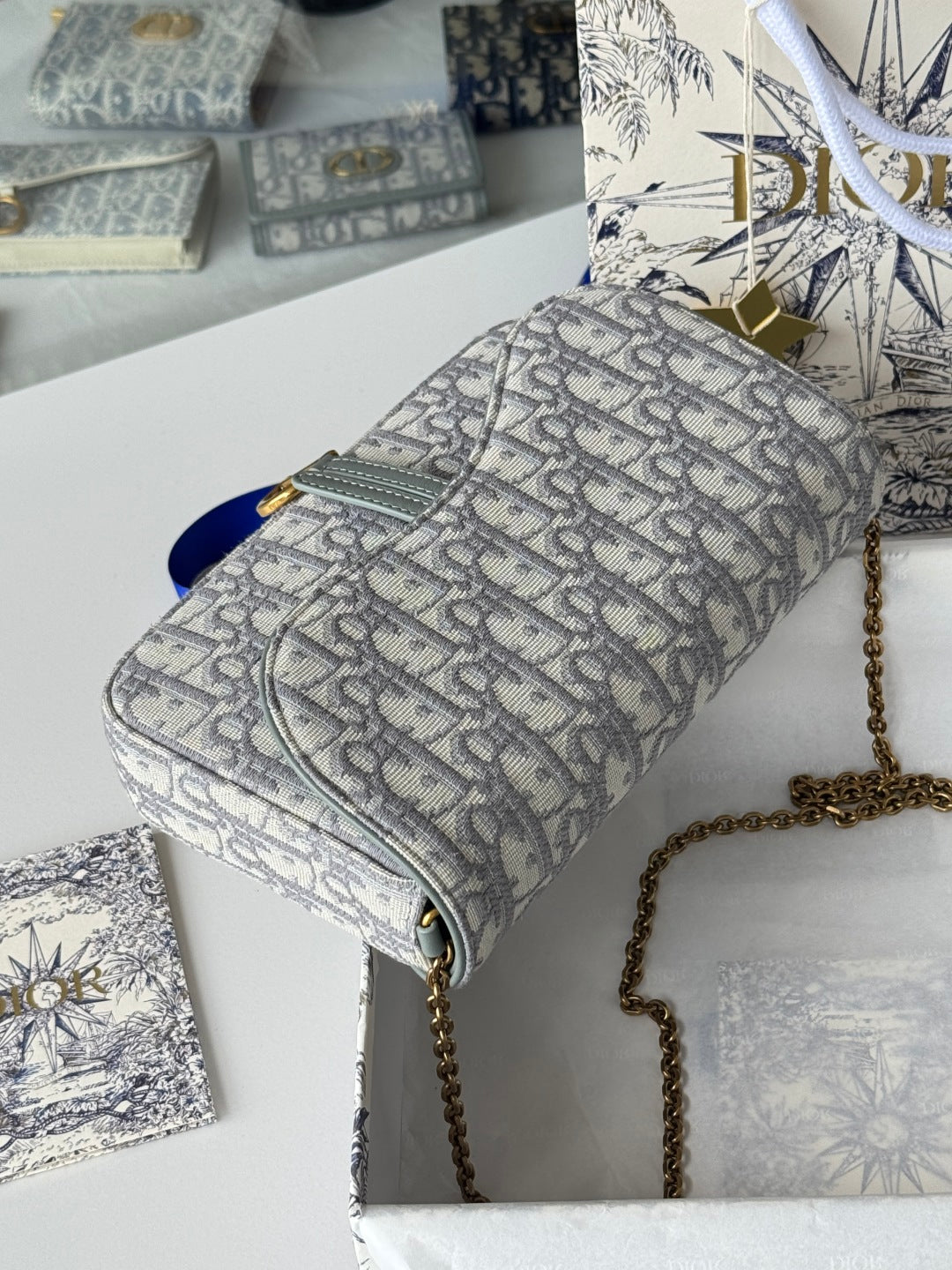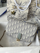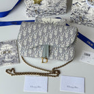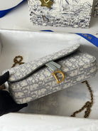 CD Medium Saddle Pouch with Chain 21.5cm Grayish Jacquard Cowhide GHW