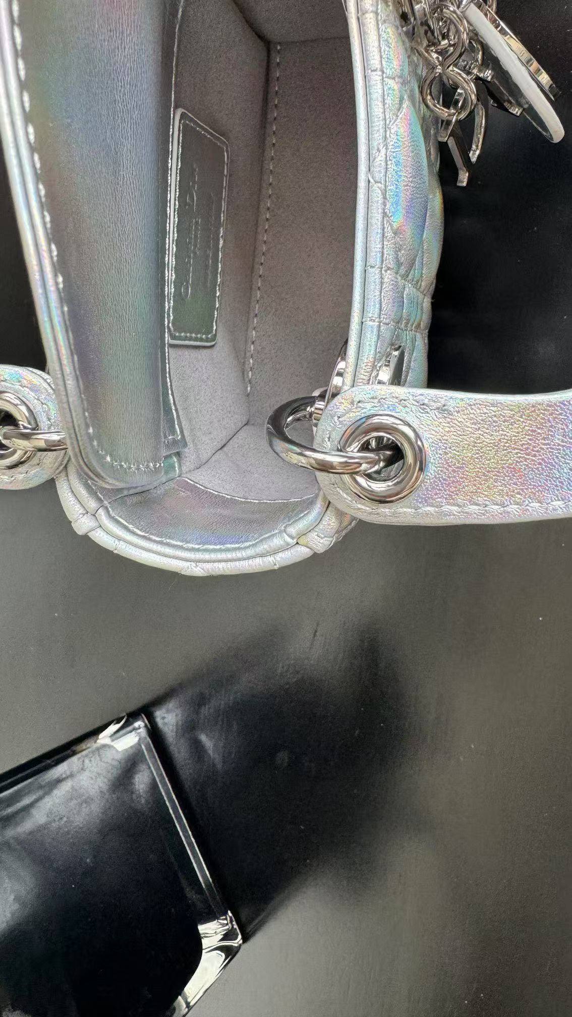 CD MINI LADY 12 SILVER PATENT LAMBSKIN