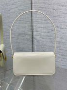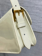FLAP BAG 18 IN WHITE PATENT CALFSKIN