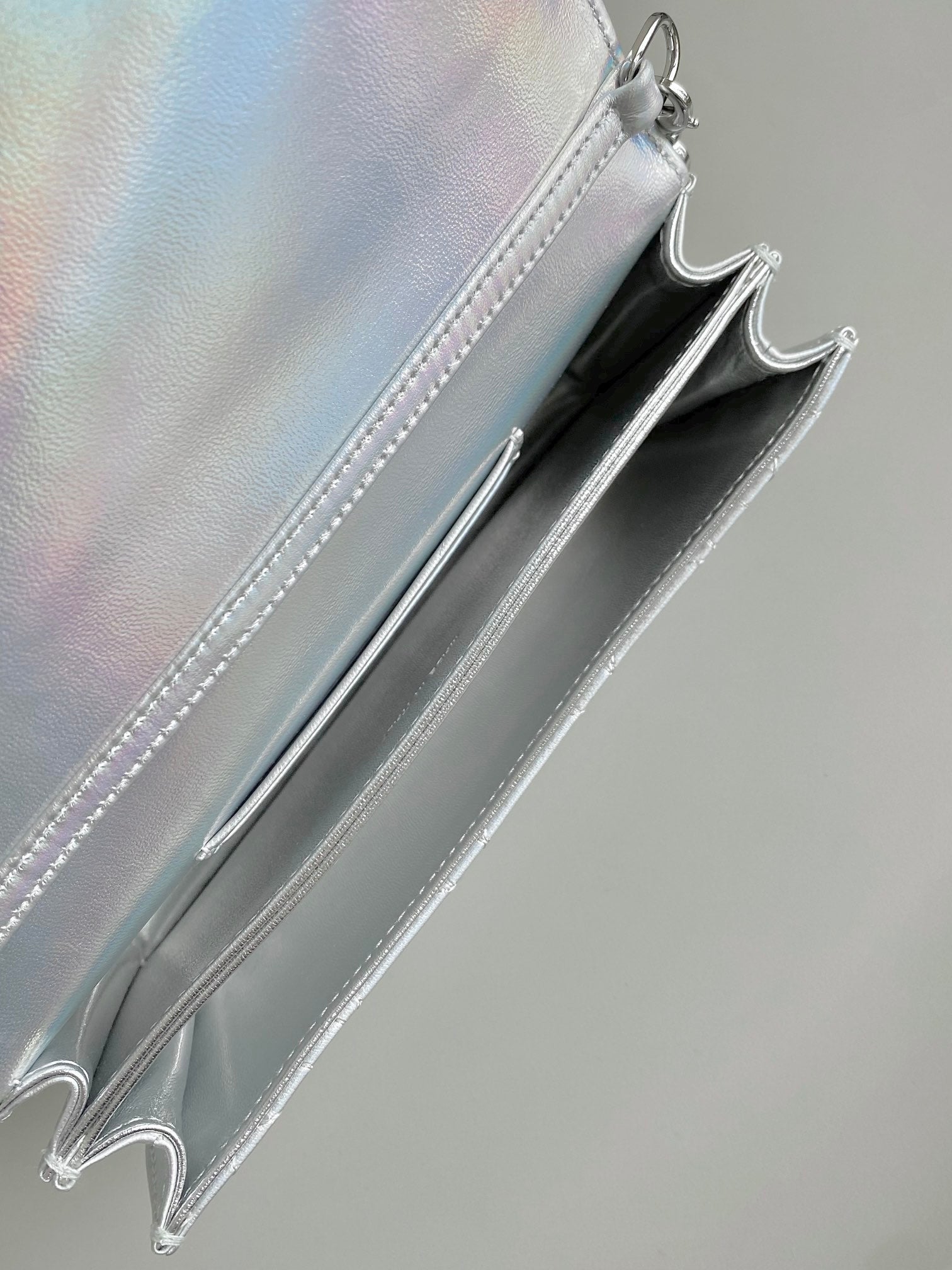 LADY 21 CHAIN BAG IN SILVER LAMBSKIN