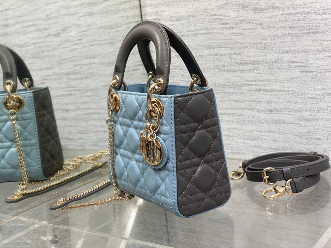 Lady Bag 17cm Celeste Blue Grey Lambksin