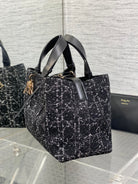 MEDIUM 28 TOUJOURS BAG IN BLACK MIX WHITE CANNAGE TWEED WITH GOLD HARDWARE