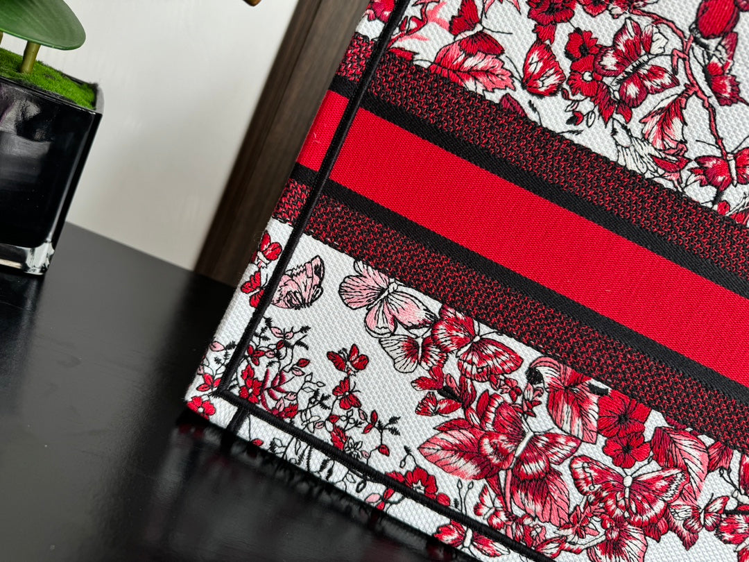 Medium CD Book Tote 36cm White and Red Heart Butterfly Embroidery