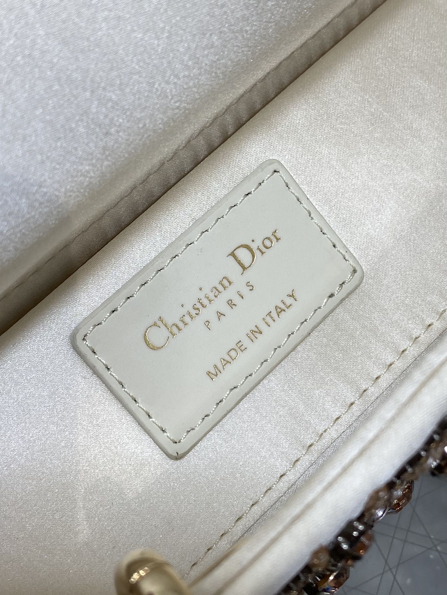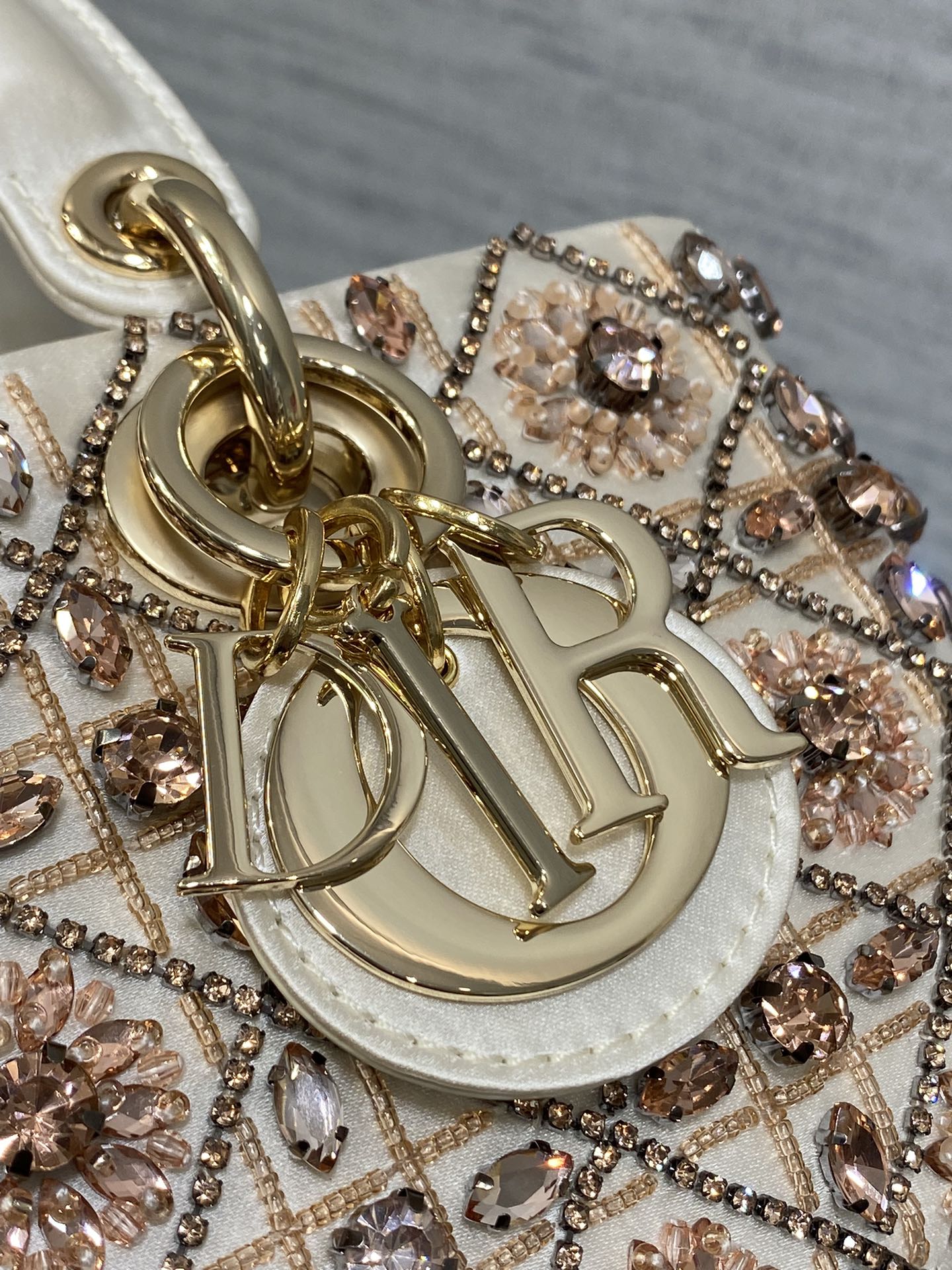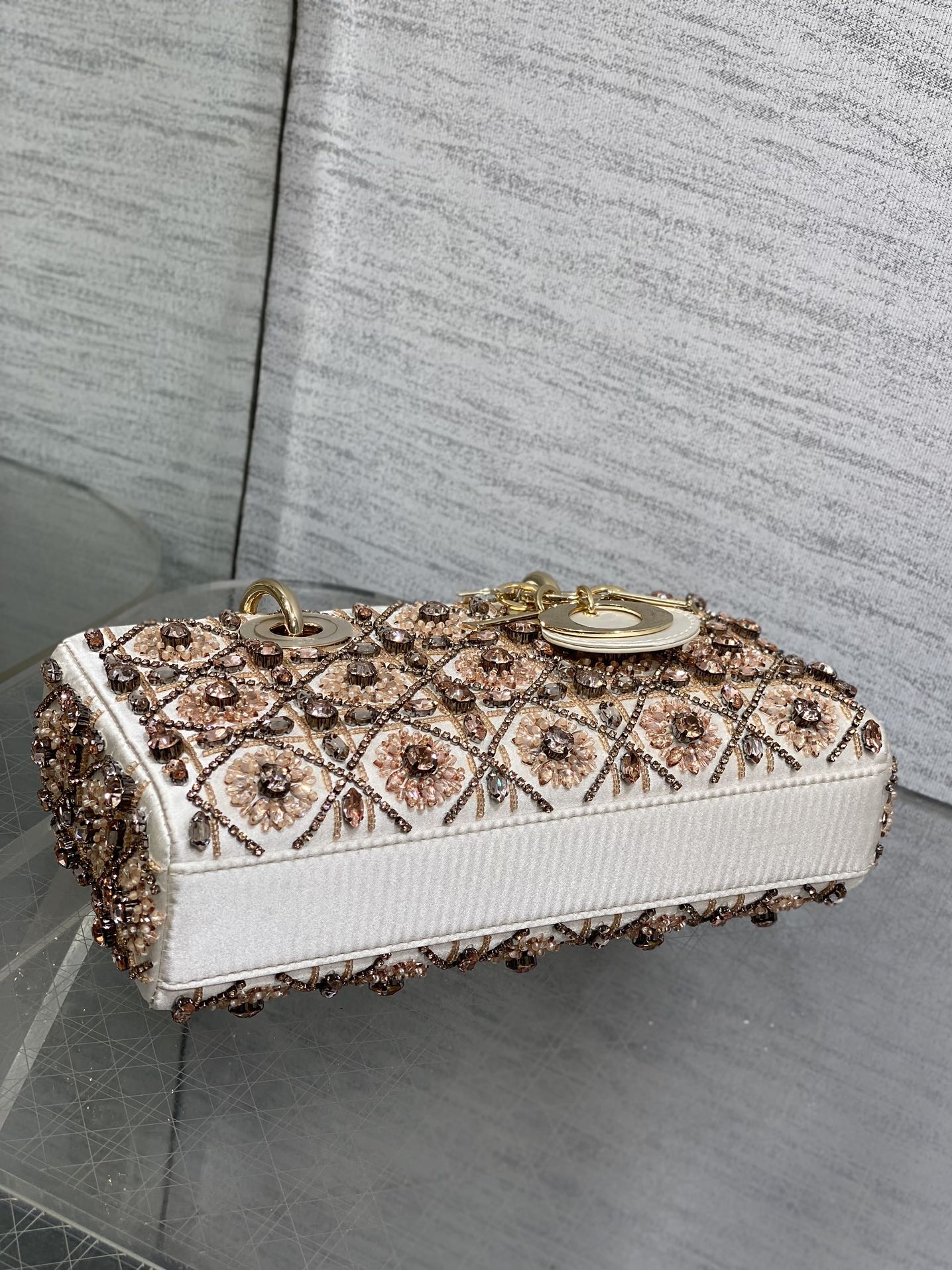 MINI 22 LADY BAG IN WHITE SATIN WITH COLORFUL EMBROIDERED BEADWORK