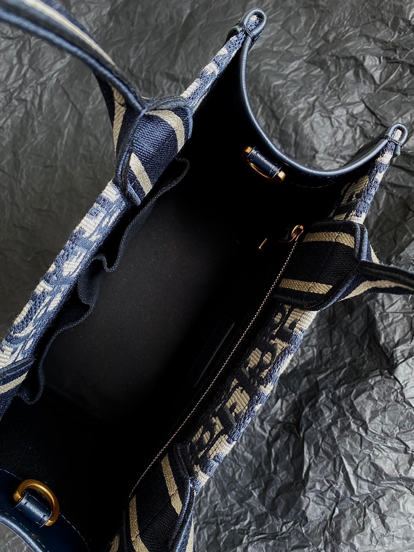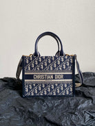MINI BOOK TOTE 26 BLUE OBLIQUE EMBROIDERY