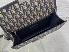 MONTAIGNE EAST-WEST 25 BAG WITH CHAIN IN NAVY BLUE LAMBSKIN AND MONOGRAM JACQUARD