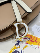 SADDLE BAG 25 WITH STRAP LATTE WHITE MIX MEDIUM BROWN GRAINED CALFSKIN