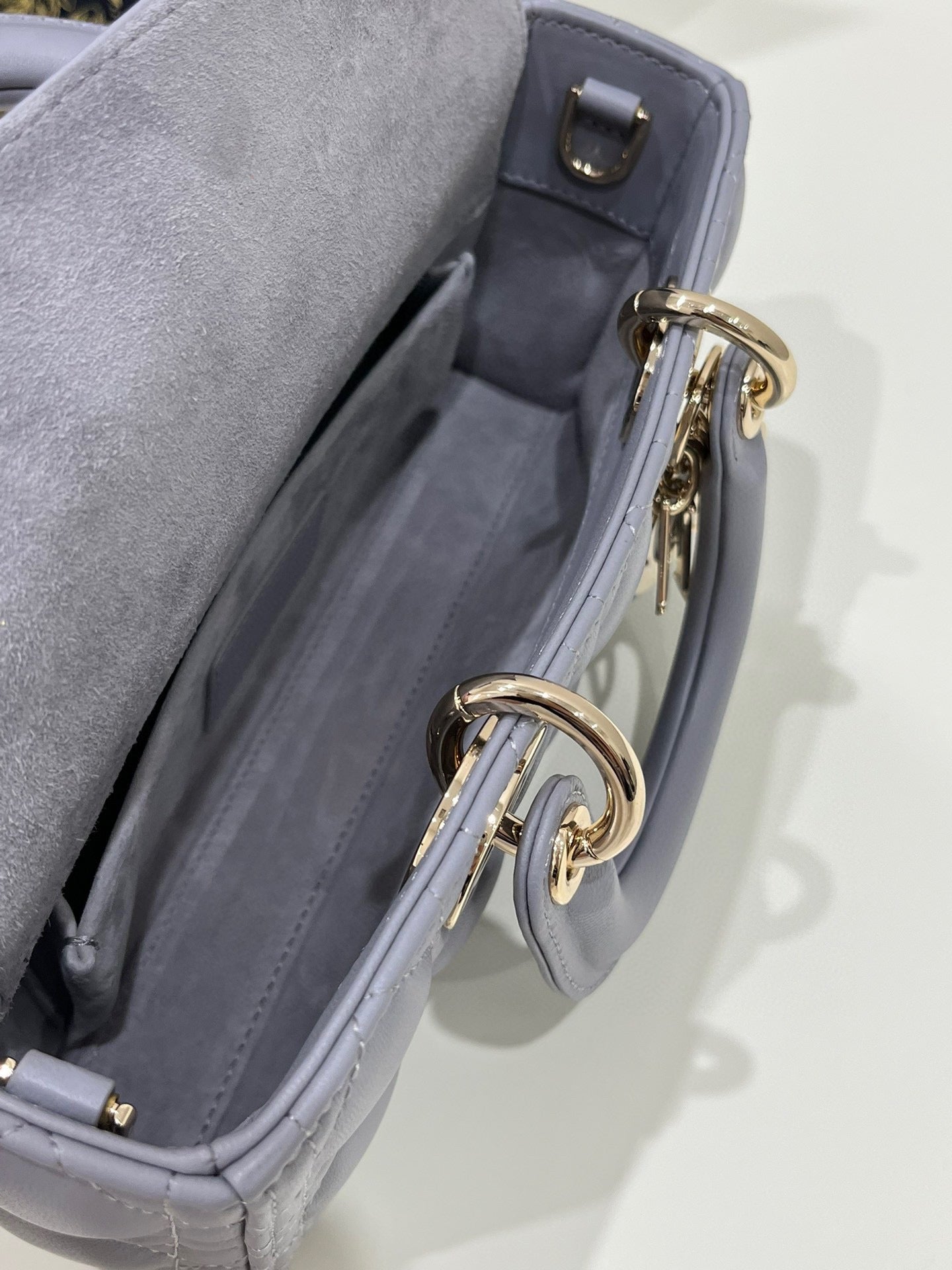 SMALL D-JOY BAG 22 IN GREY LAMBSKIN