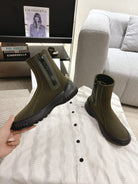 CD Ankle Boots Brown Moss Green Elastic Fabric