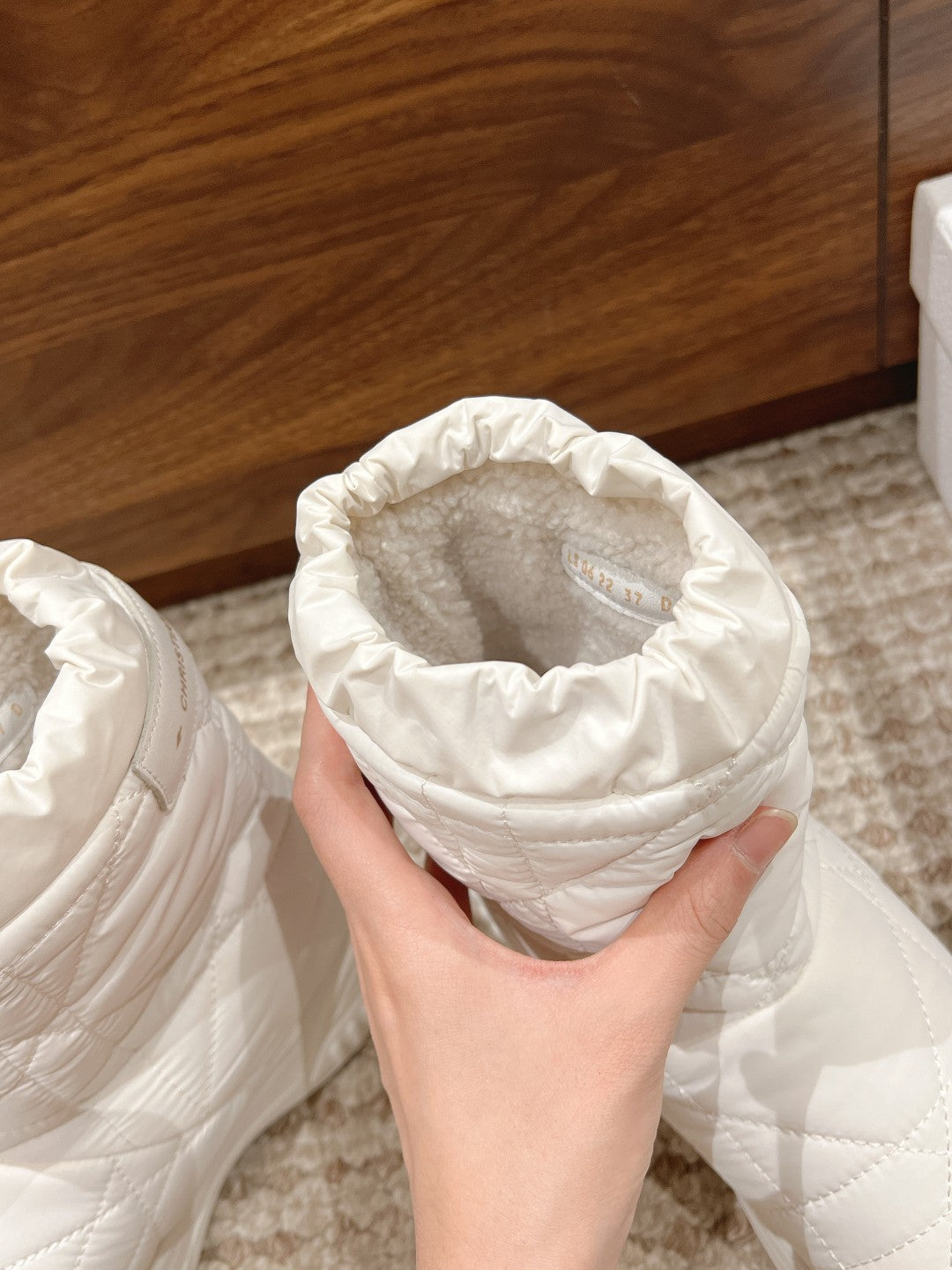 CD Ankle Boots White Quilted Windbreaker Fabric And Fleece