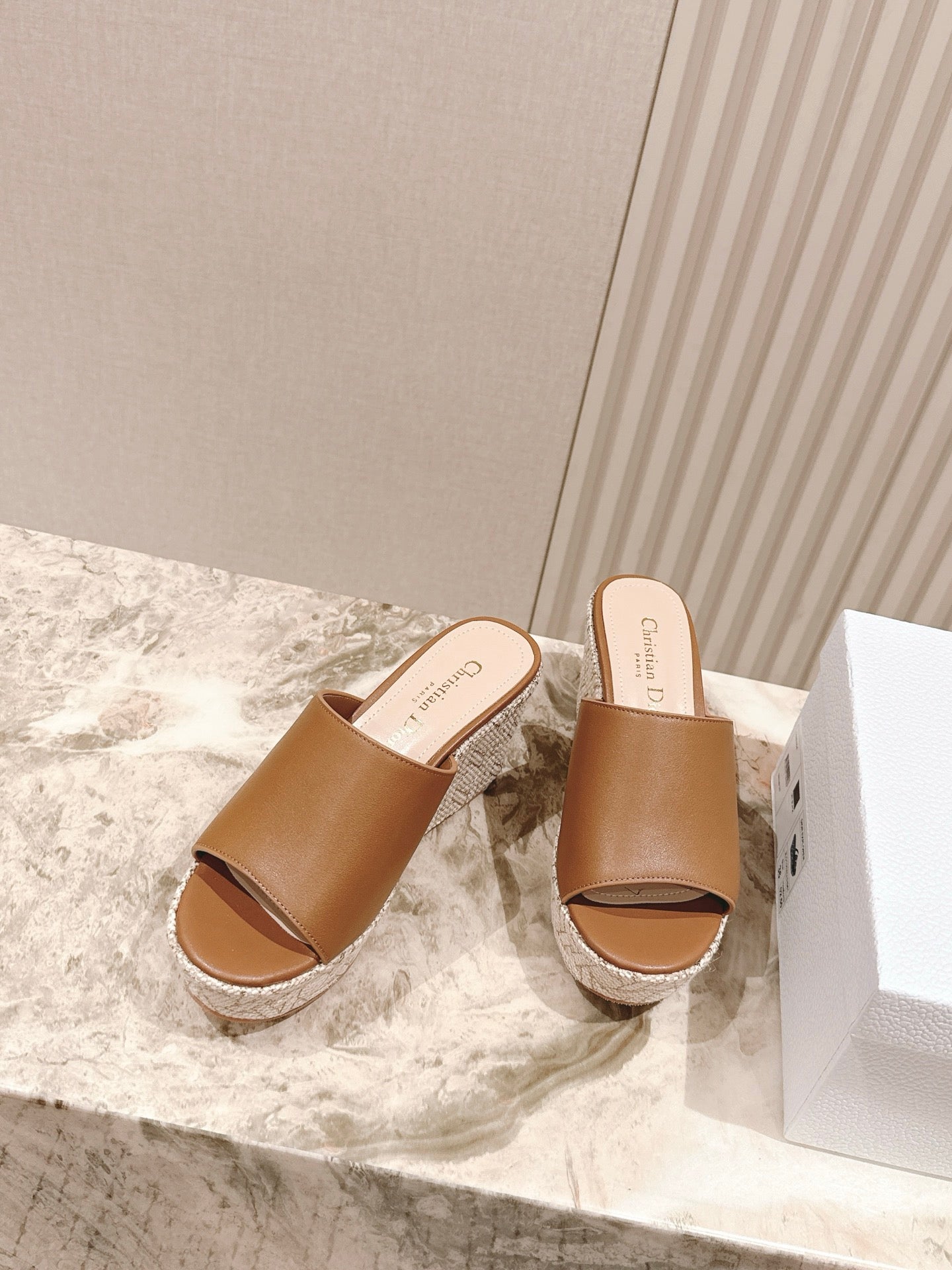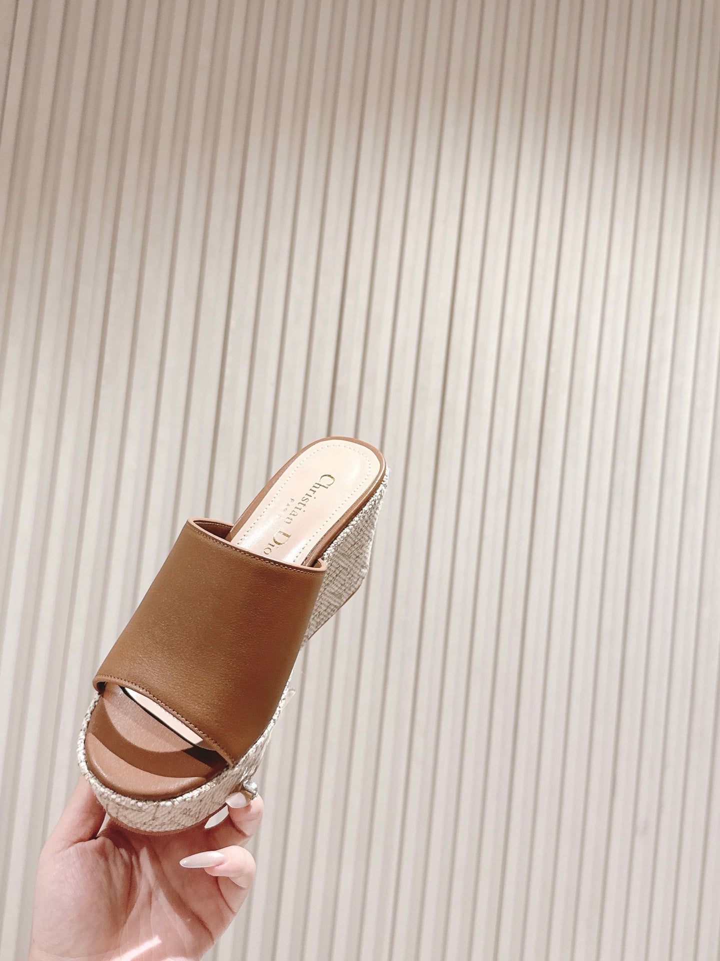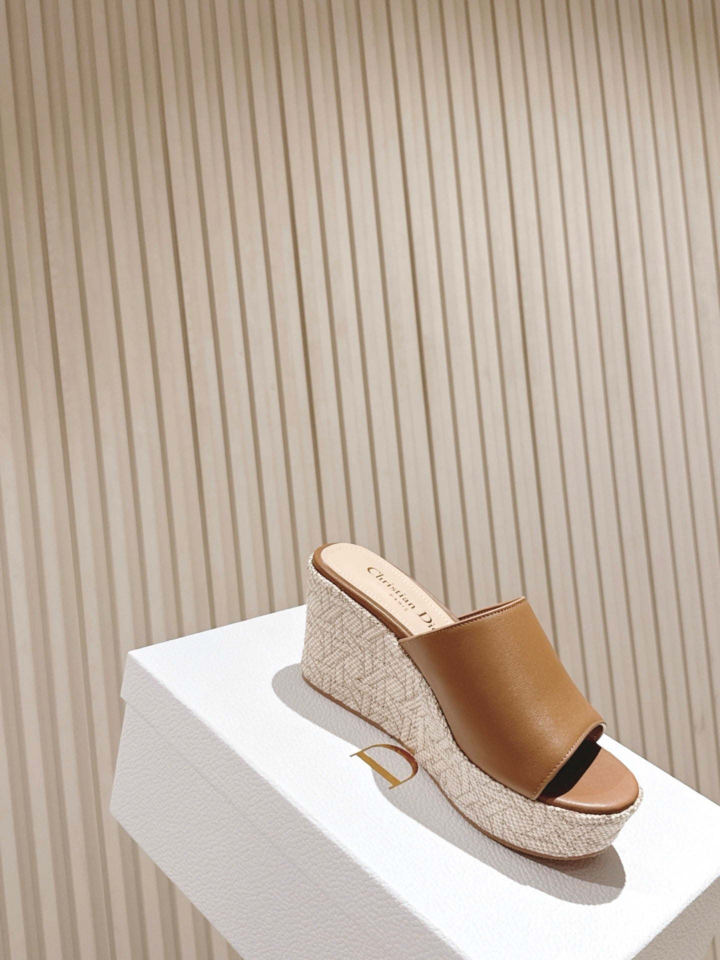 CD Attitude Wedge Slide 85mm Camel Calfskin 483086
