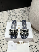 CD Dway Heeled Slide Deep Blue Mix Black White Embroidered Cotton