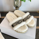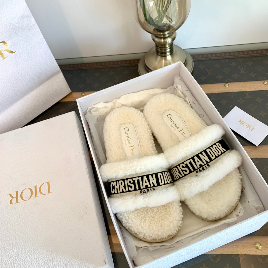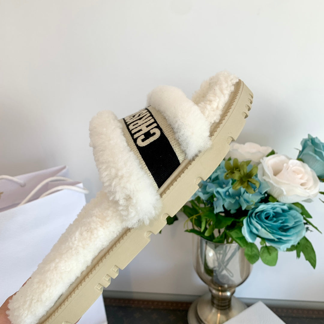 CD Dway Slide Black White Wool Fleece Lining And Canvas Fabric