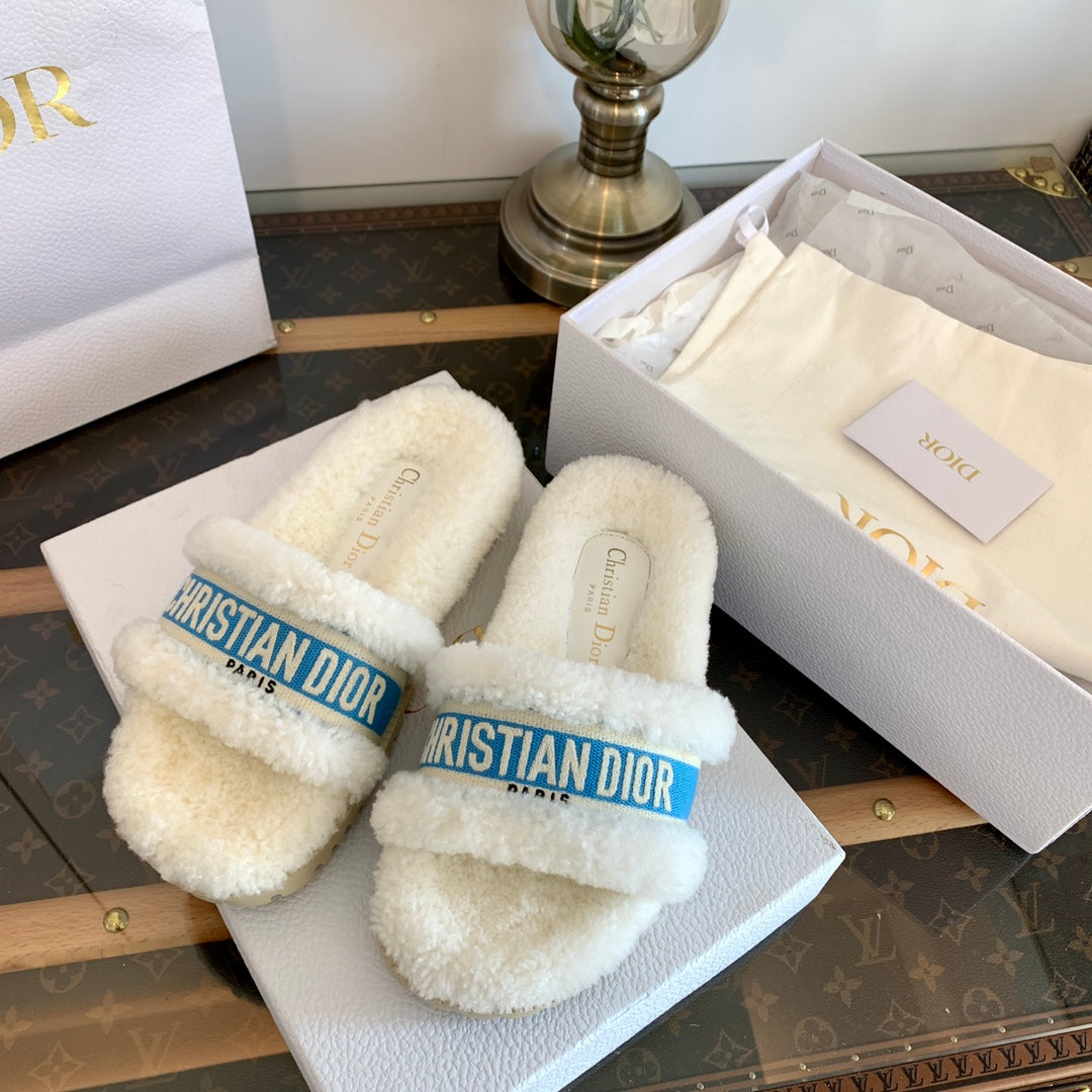 CD Dway Slide Blue White Wool Fleece Lining And Canvas Fabric