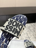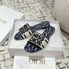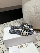CD Dway Slide Deep Blue Mix White Black Embroidered Cotton