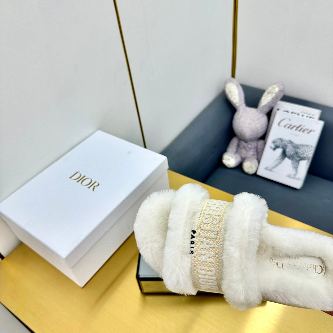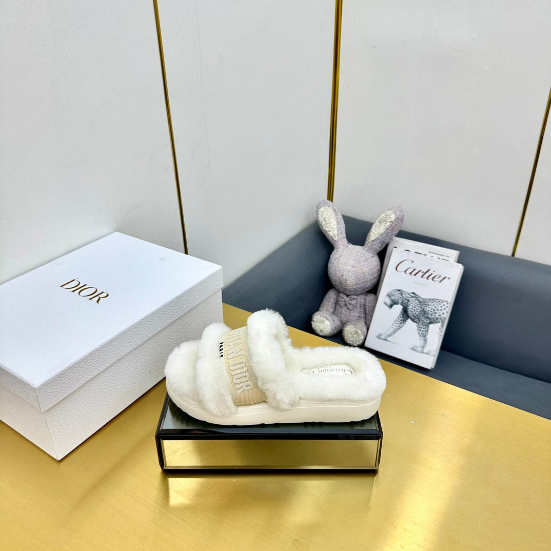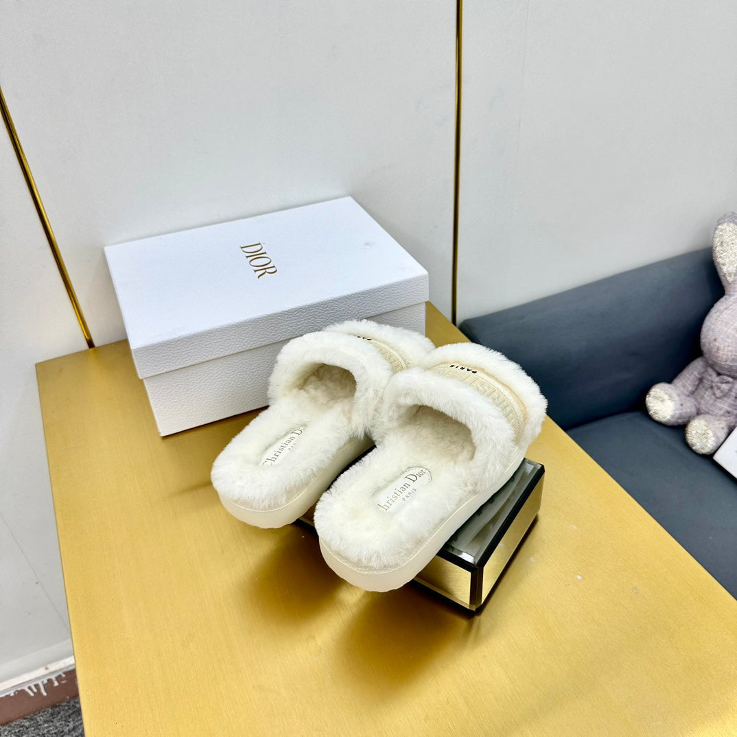 CD Dway Slide In White Mix Beige Wool Fleece Lining And Canvas Fabric 111083