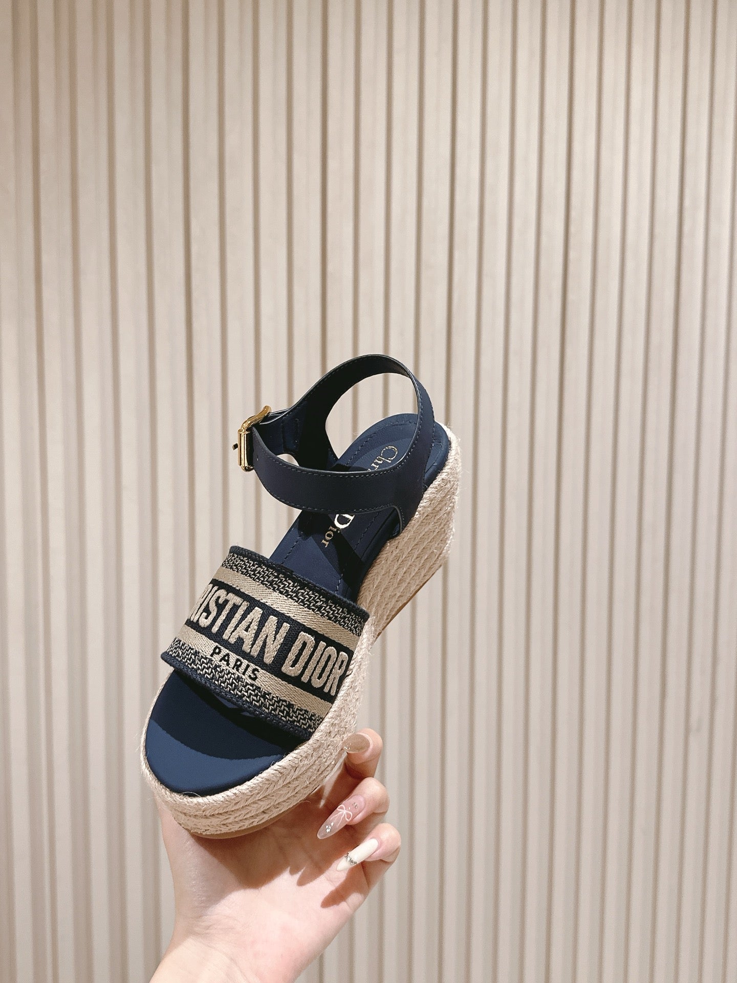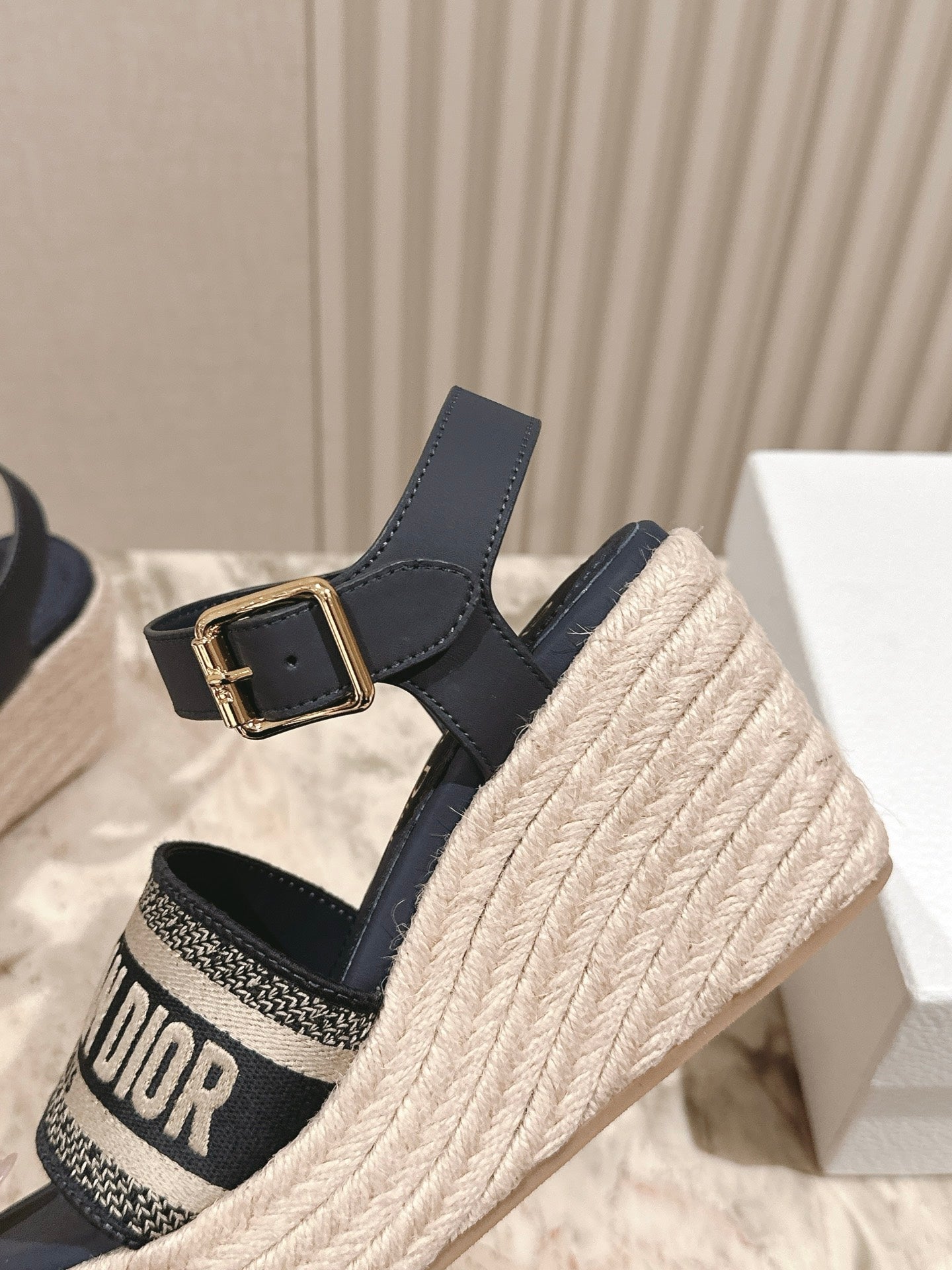 CD Dway Wedge Sandal 85mm Deep Blue Calfskin and Embroidered 483077
