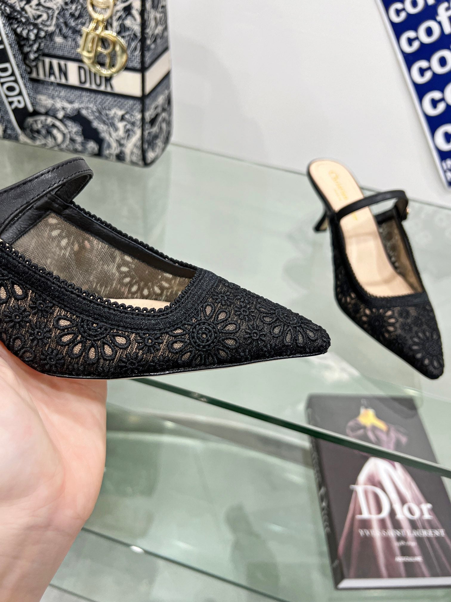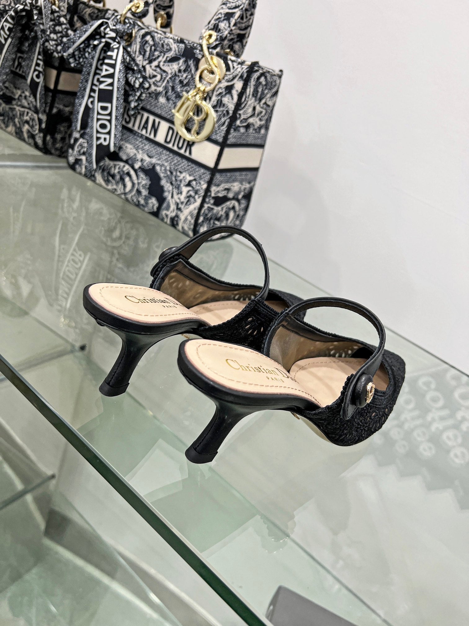 - Material: Calfskin, transparent mesh embroidered