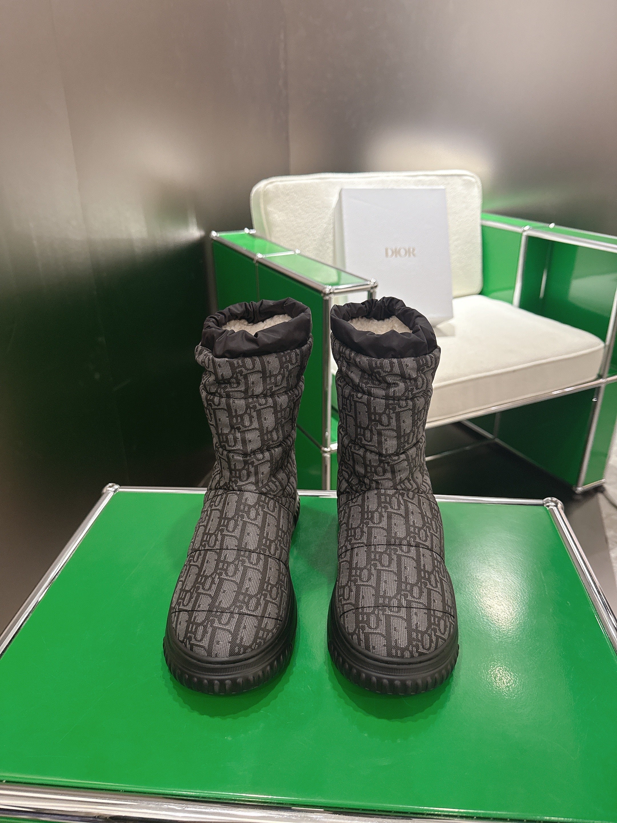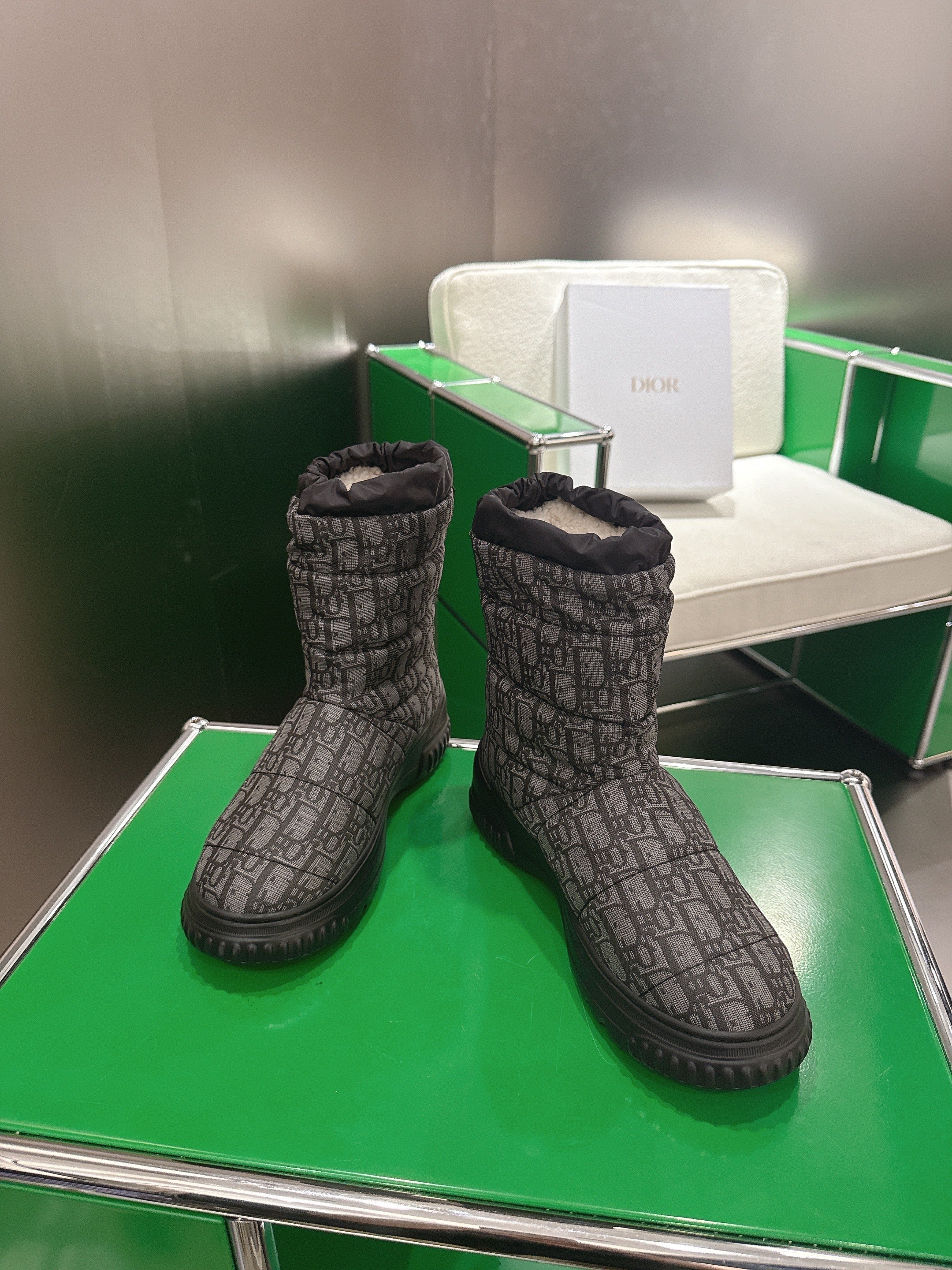 Dior 2025 Frost Ankle Boot Black Gray Frabic Calfskin Wool 507567