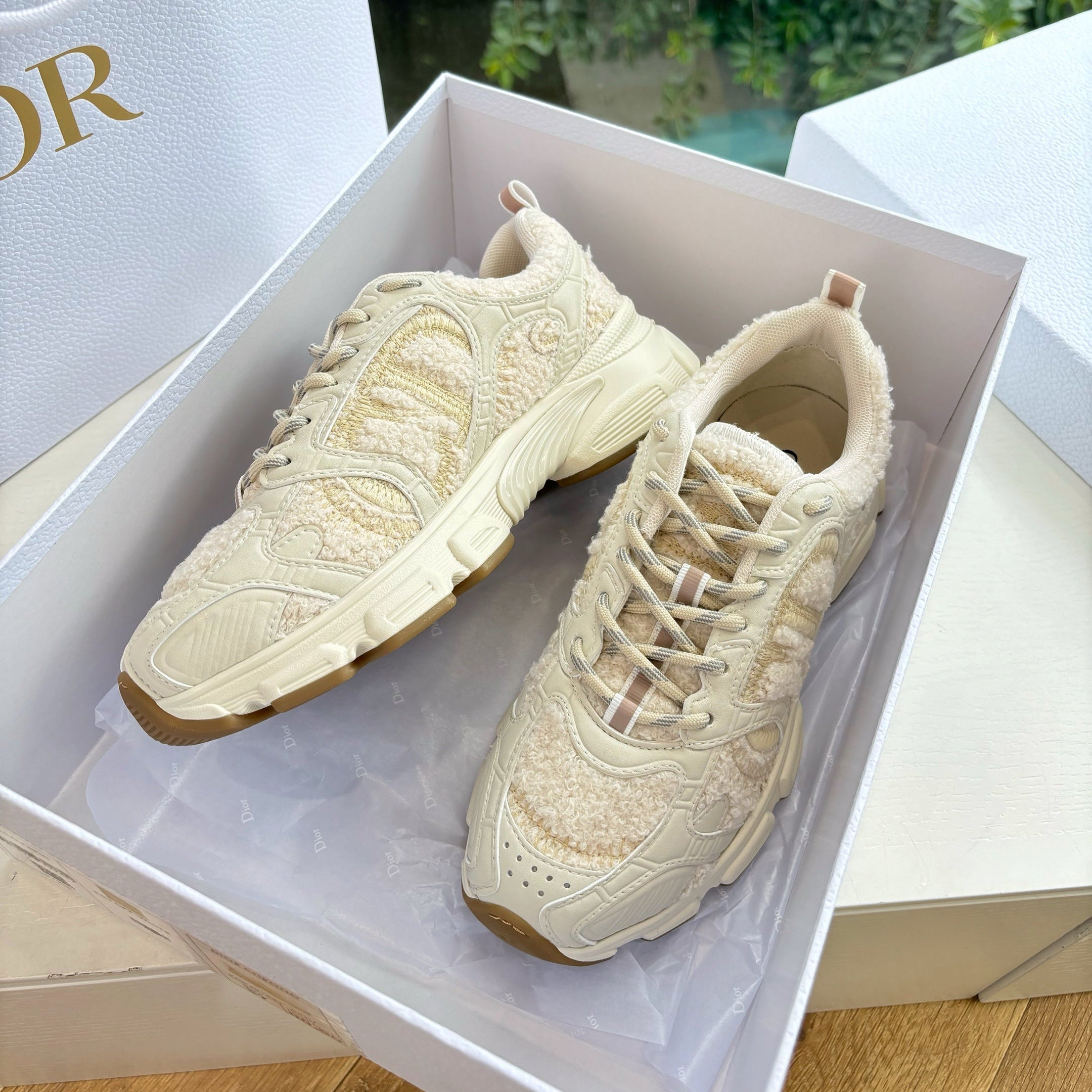 Walk'n'Dior Sneaker In Nude Beige Mix White Wool And Cowhide 111927