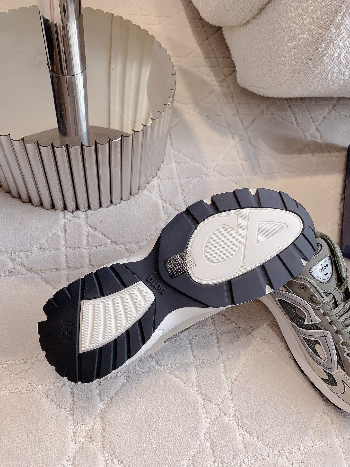 CD B30 Sneaker Gray Brown Mix Beige White Polyester Mesh Fabric And Calfskin