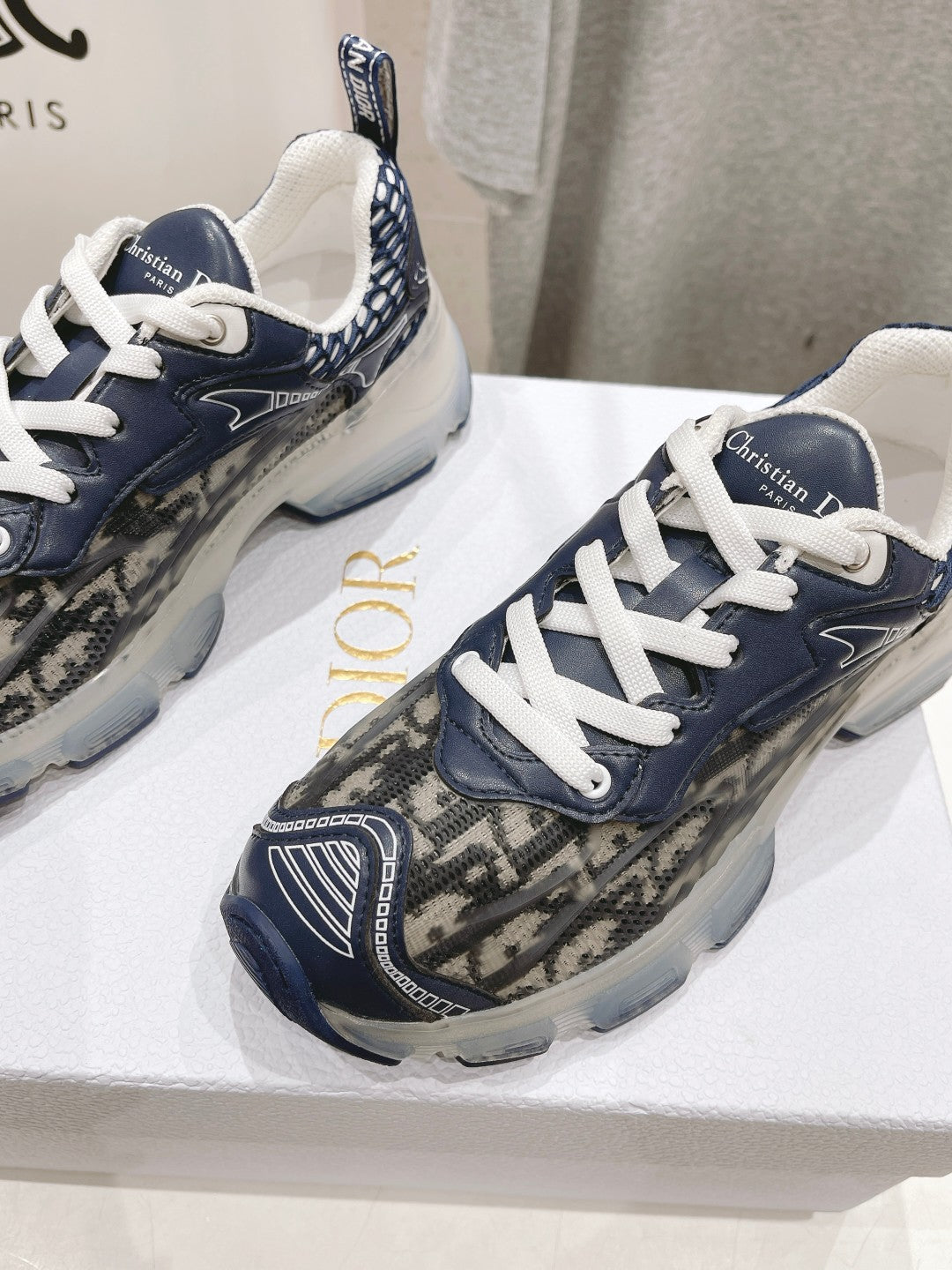 CD Vibe Sneaker Charcoal Blue Black Polyester Mesh Fabric And Oblique Jacquard Fabric