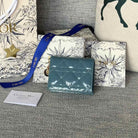 CD Caro 11cm Compact Wallet Shiny Teal Calfskin