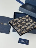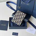 CD Oblique Passport Holder Black Beige Jacquard Cowhide