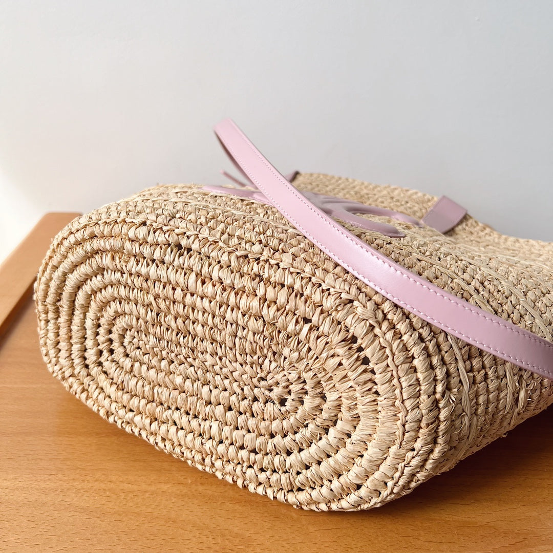 Celine Teen Supple Classic Panier 22cm Pink Calfskin Beige Raffia