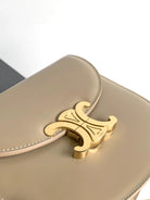 teen besace triomphe 18.5 beige calfskin with chain